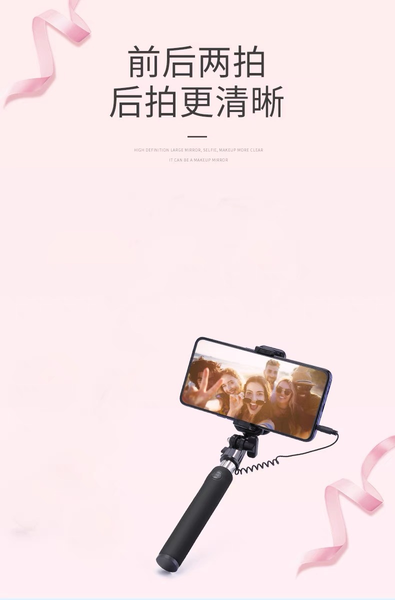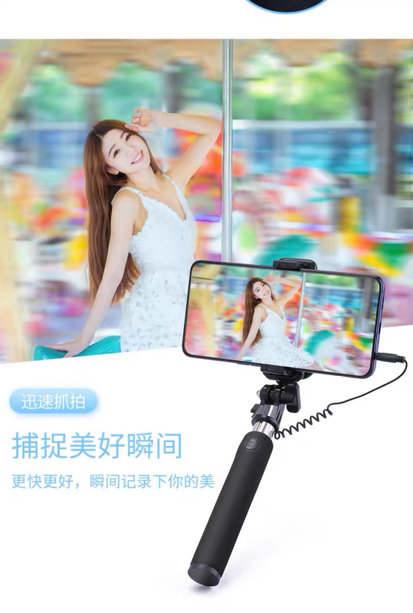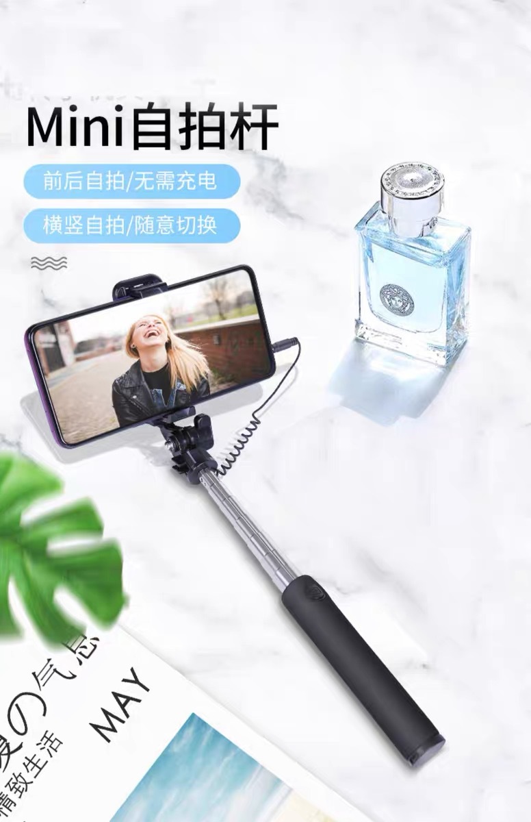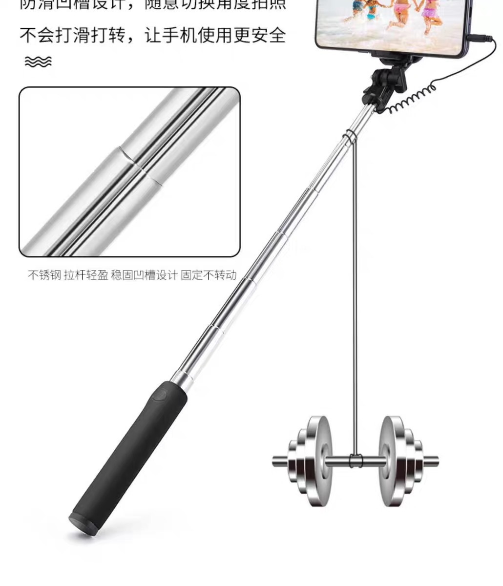 丸型ヘッドフォンジャックワイヤー制御自撮り棒