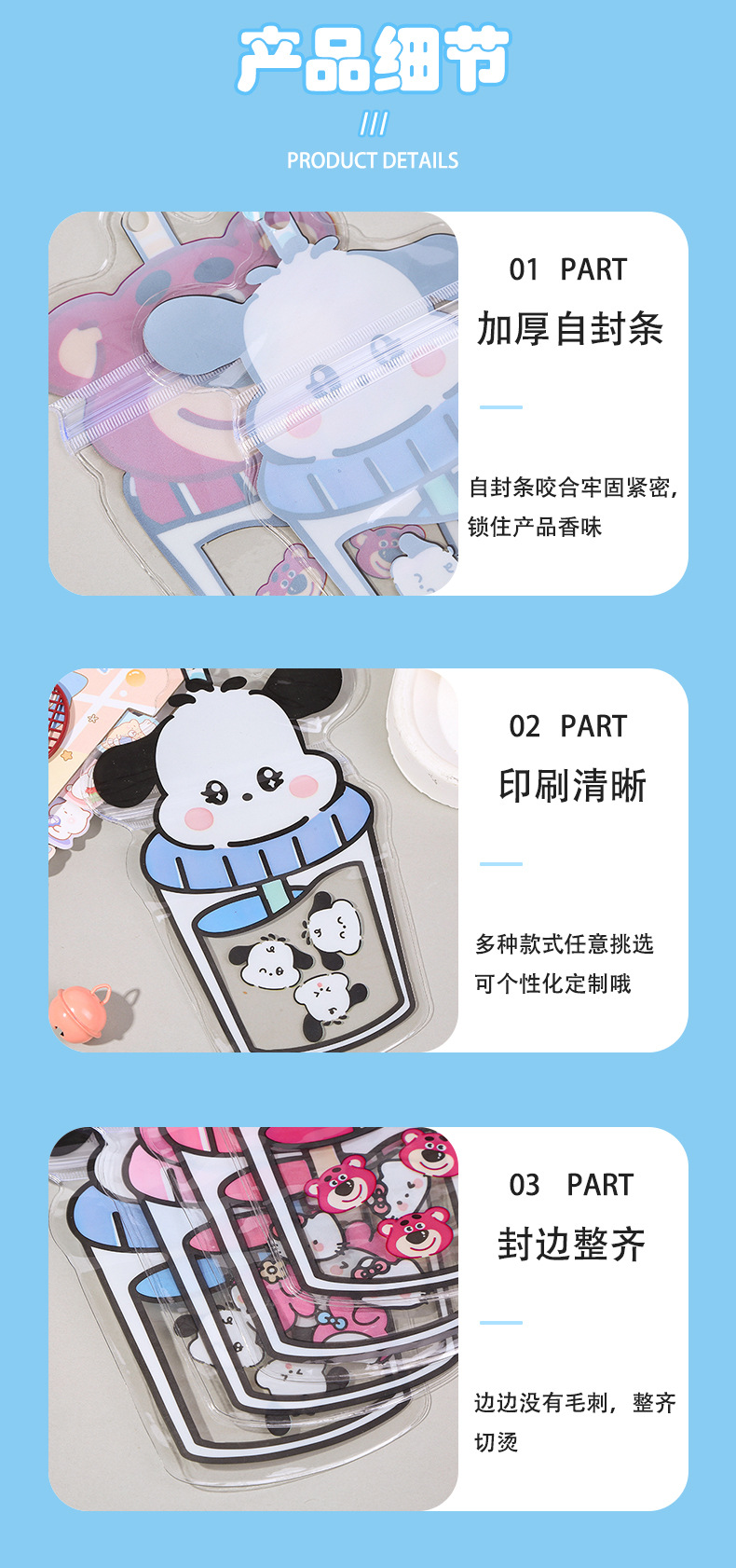 サンリオ漫画ミルクティーカップジップロックバッグ幼稚園スナックキャンディ包装収納小さなギフト包装袋密封