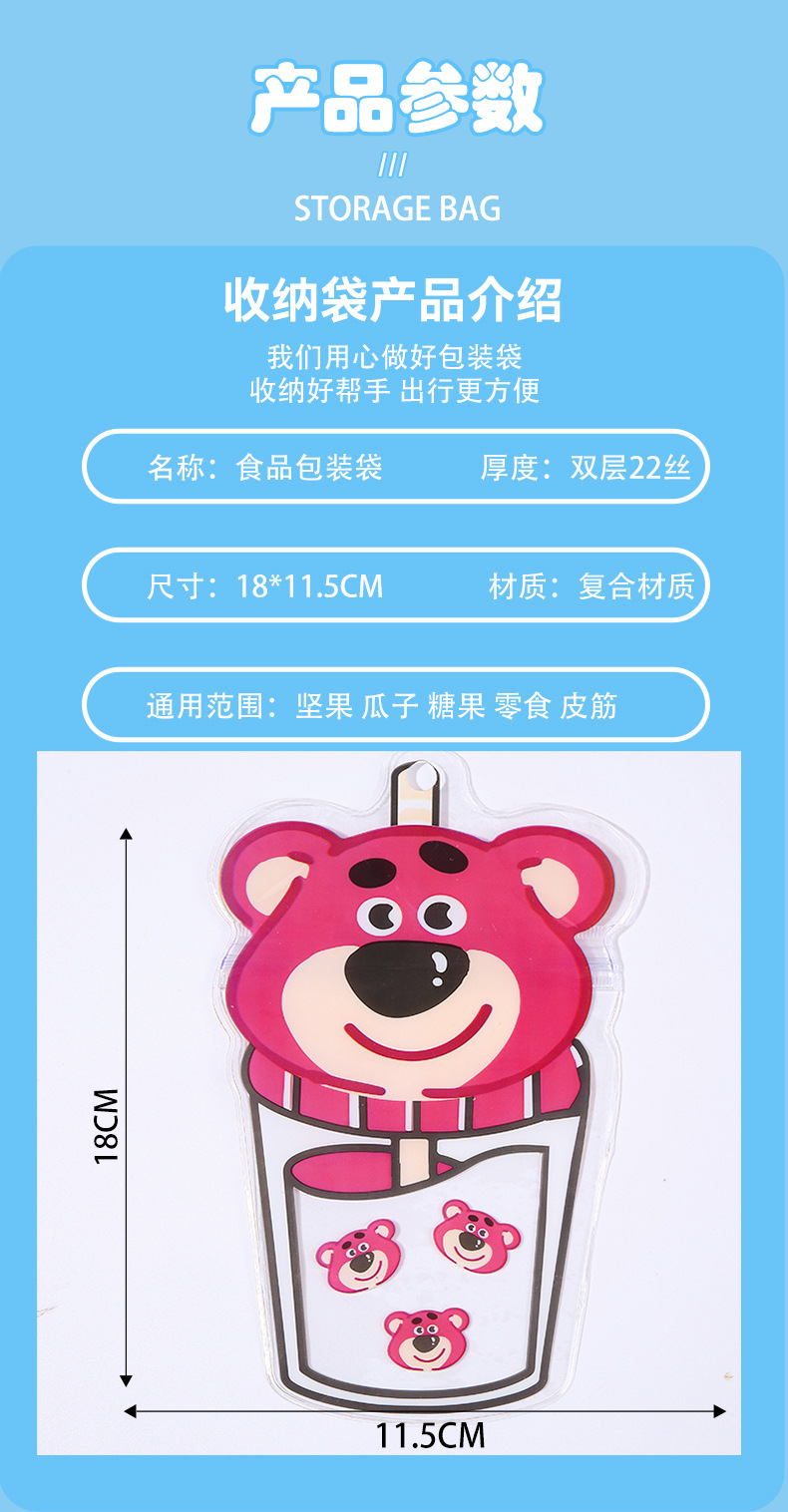 漫画三面シールキャンディスナックセルフシール包装袋ゴムバンドヘアピンジュエリー収納かわいいクマシールポケット