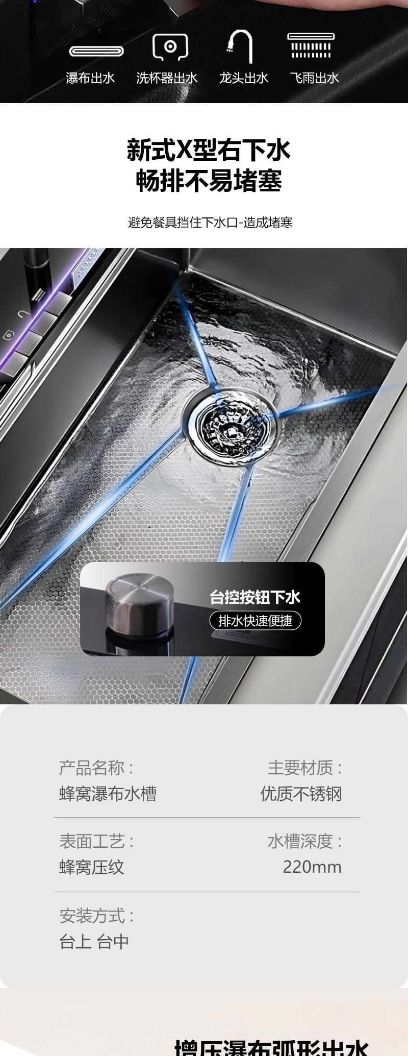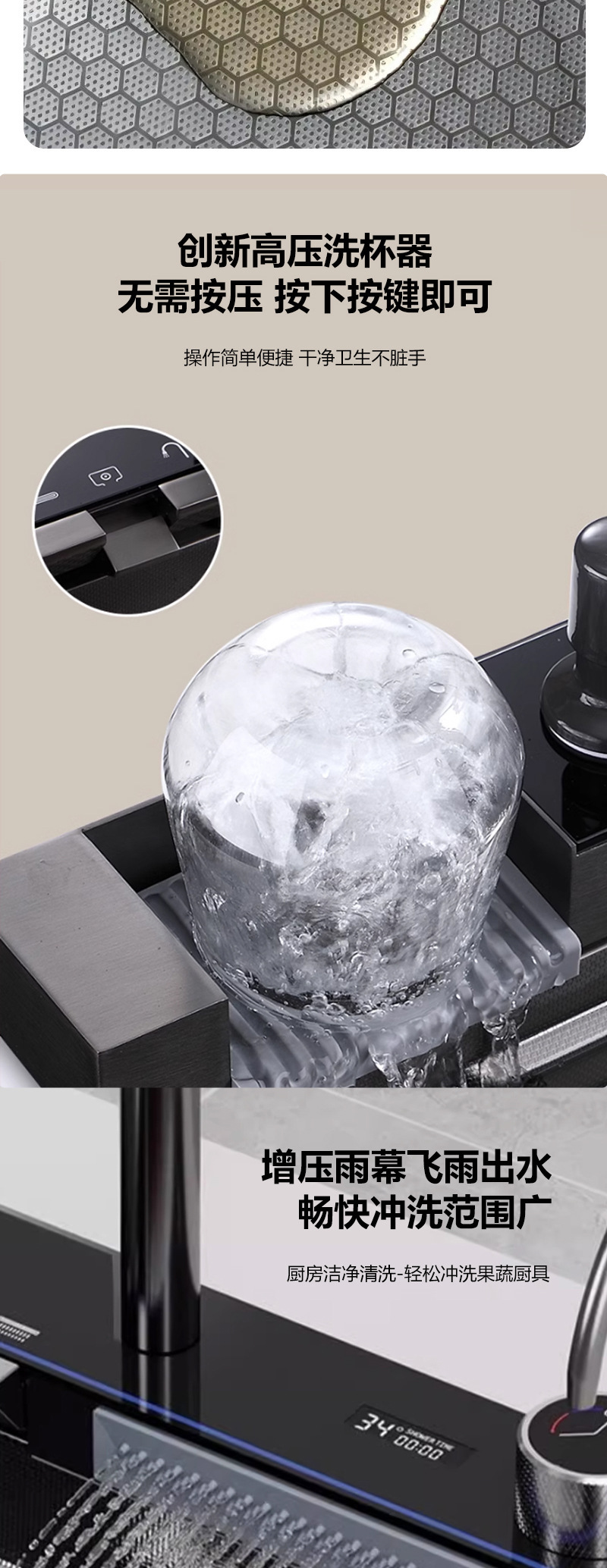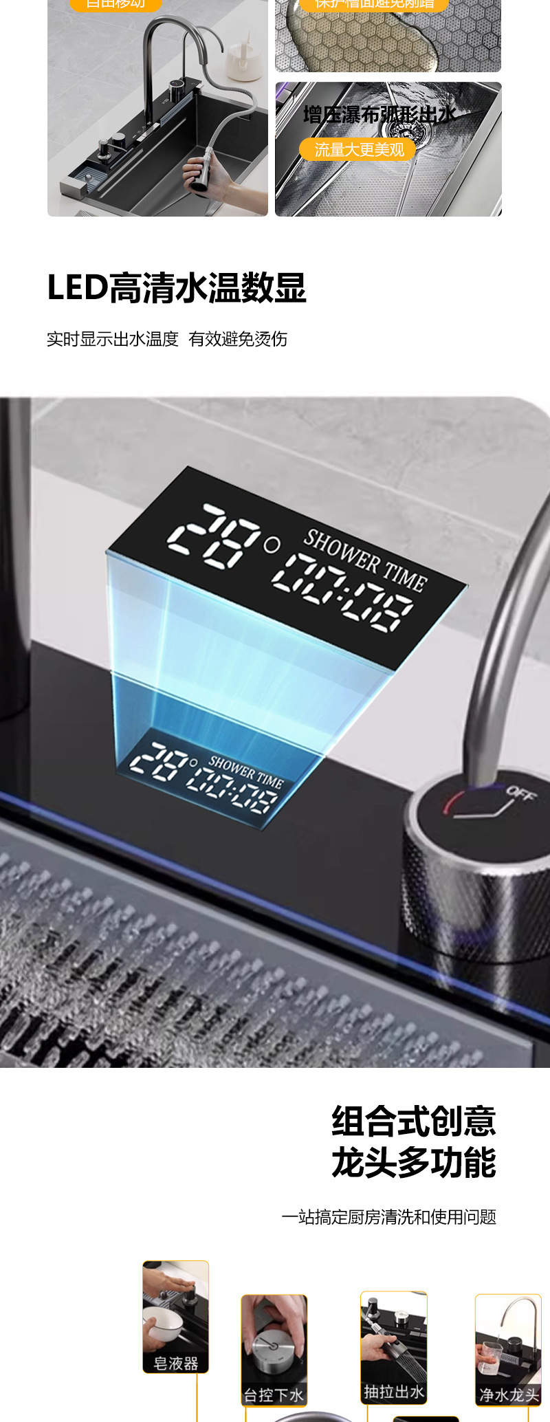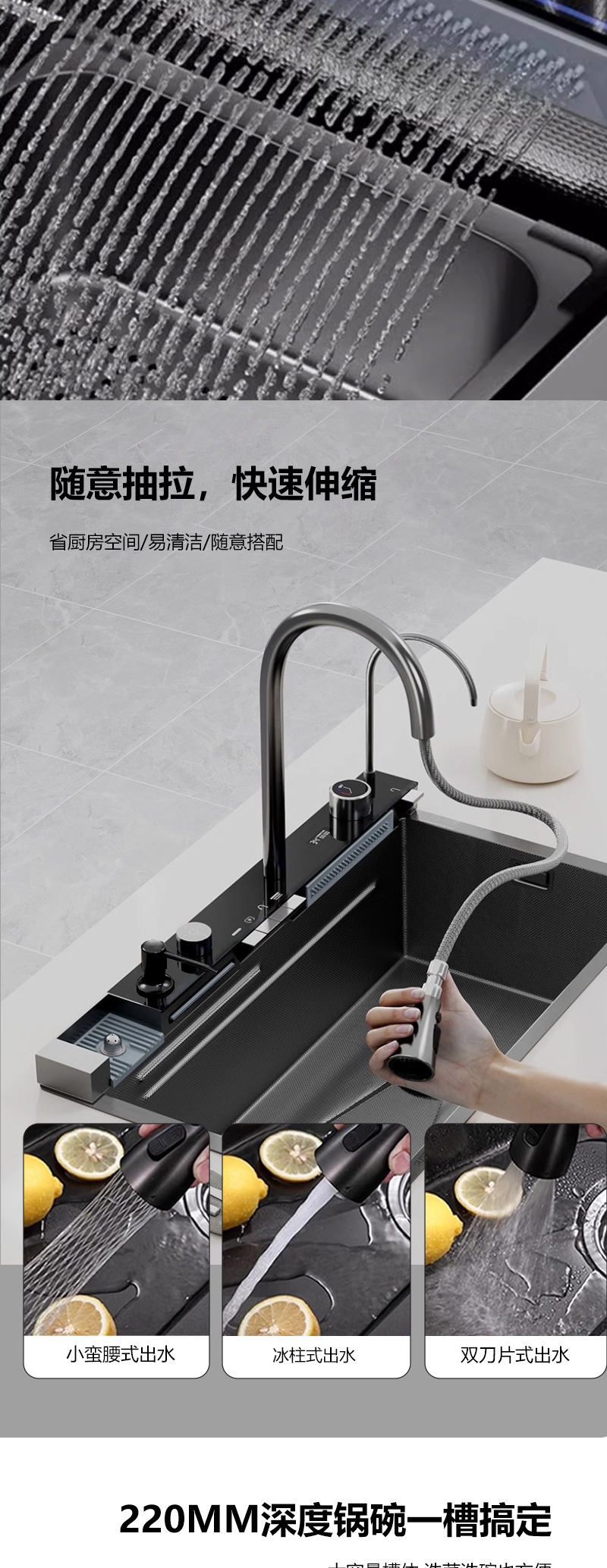 クロスボーダーステンレス鋼クジラホームキッチンシンク滝ナノハニカムデジタルディスプレイシンク大型シングルシンクシンク