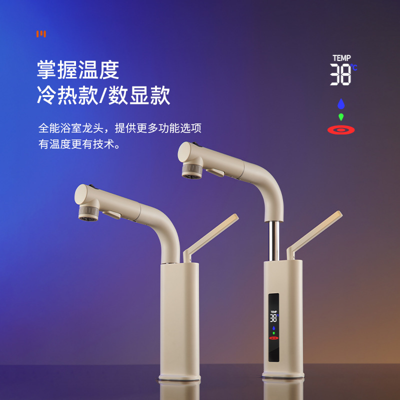 クロスボーダー伸縮式昇降浴室洗面台蛇口、洗面器、洗面台、冷温デジタル表示蛇口