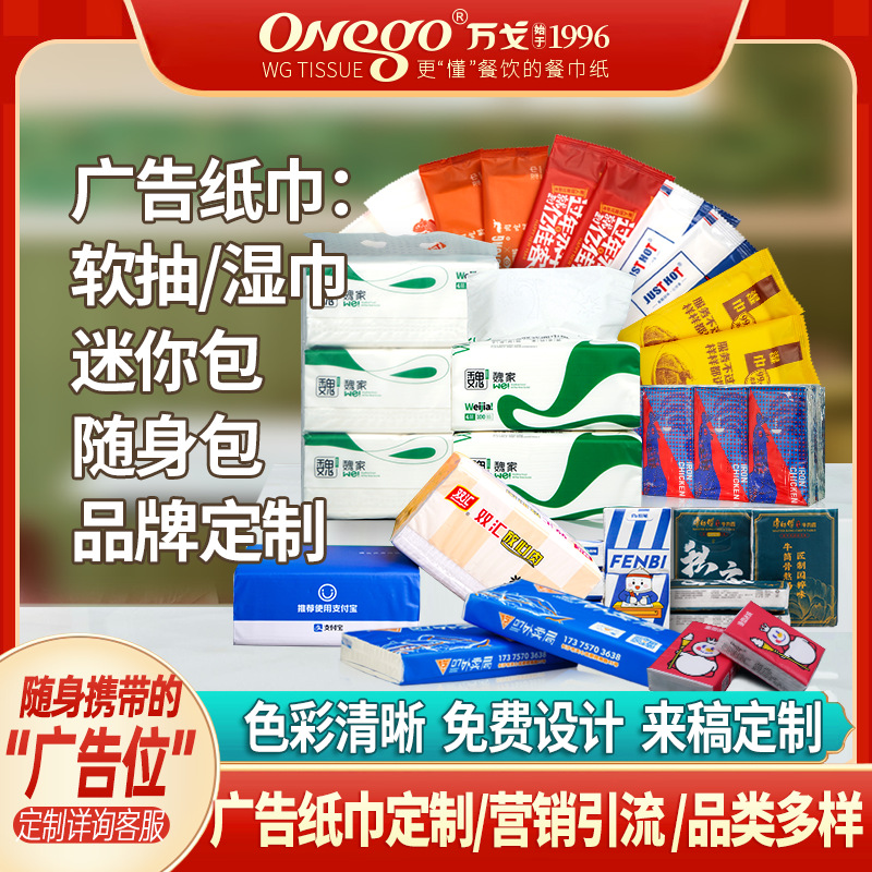 広告ペーパータオルナプキンは柔らかいウェットティッシュ食器バッグのハンカチティッシュティッシュを注文できます。小包はロゴを印刷できます。