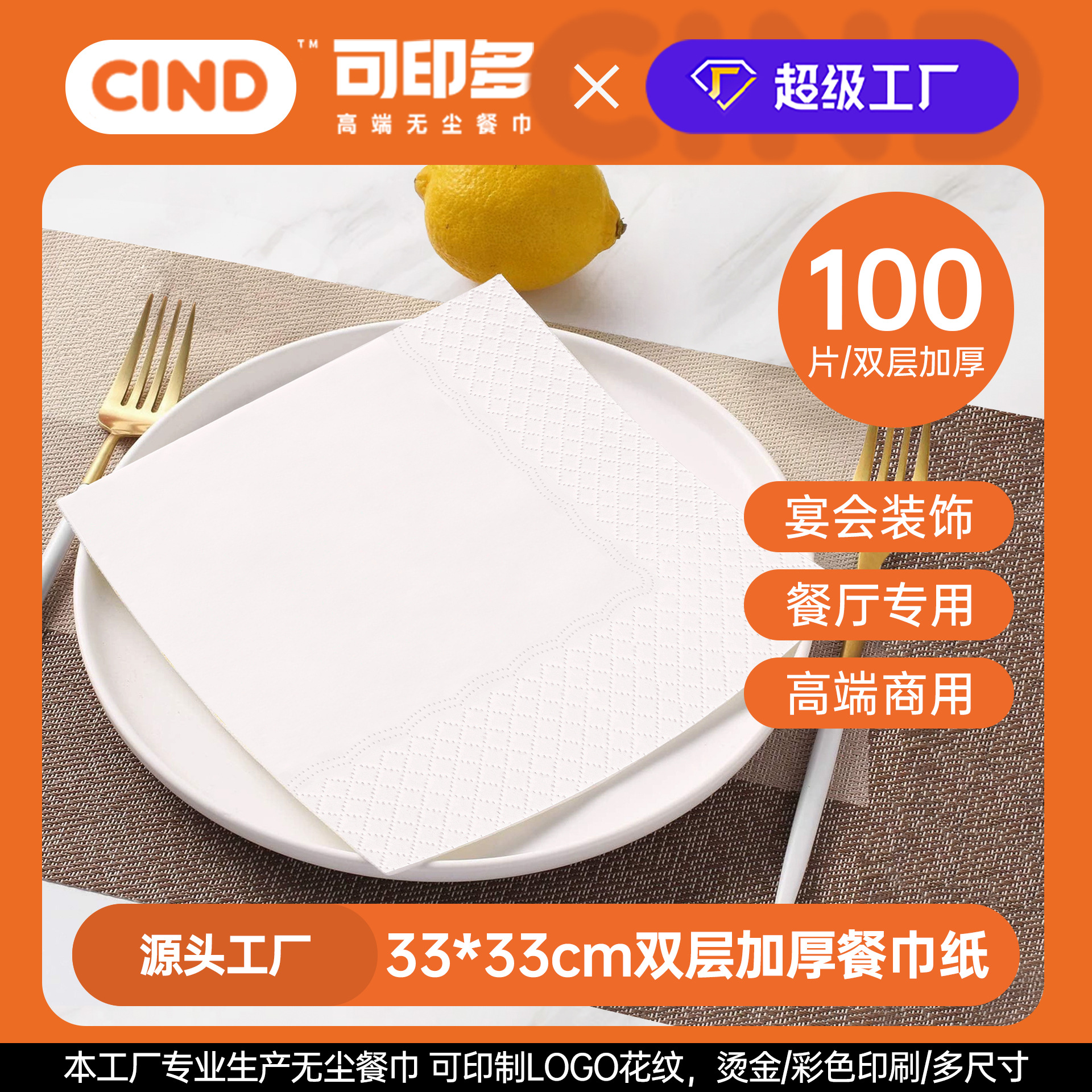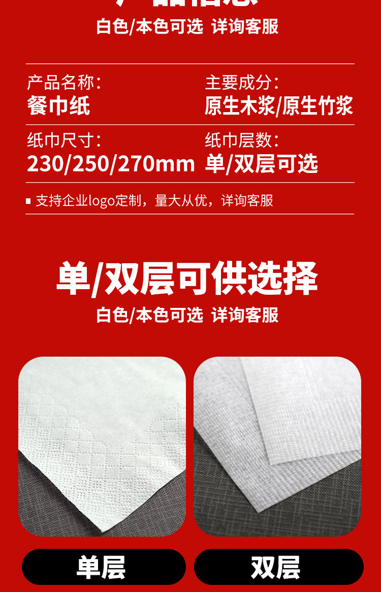 纸巾定制可印logo印花双层餐巾纸33*33cm商用餐厅餐饮方巾纸饭店