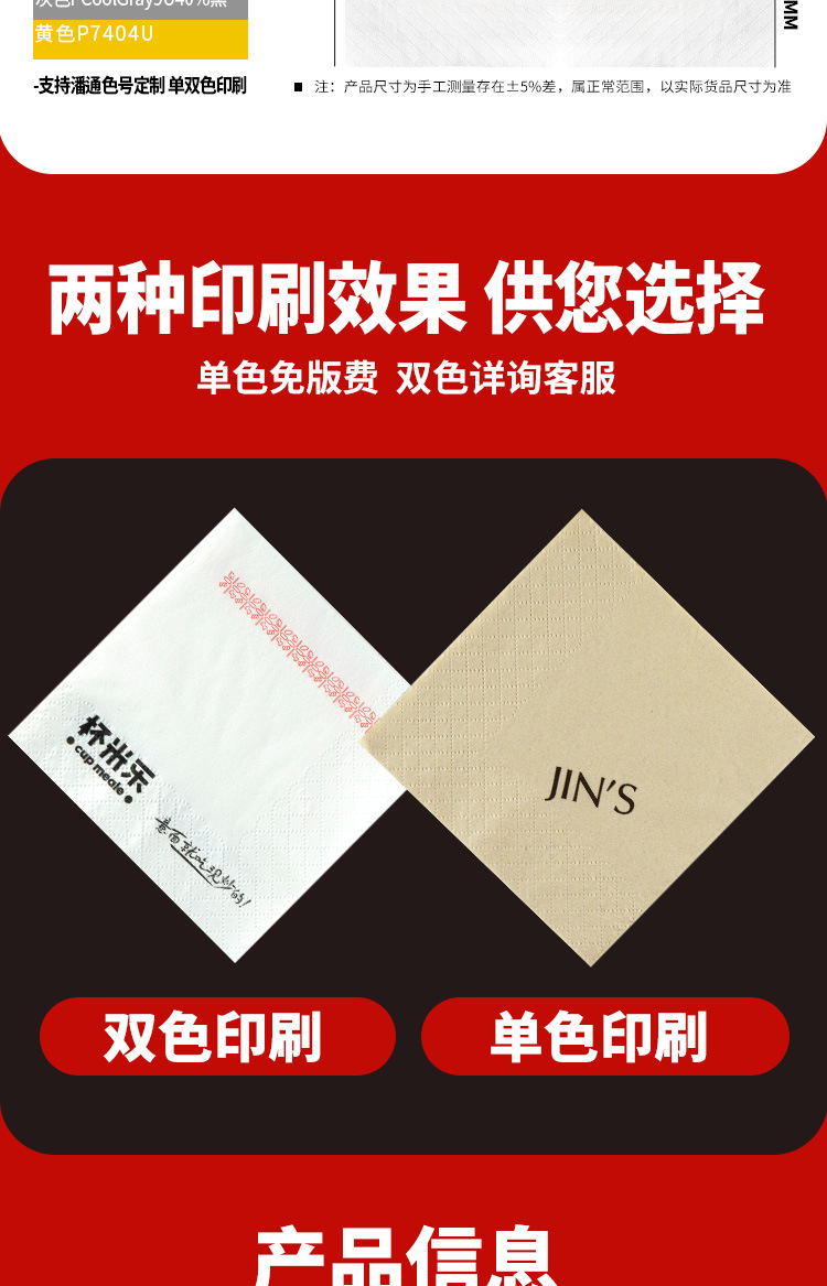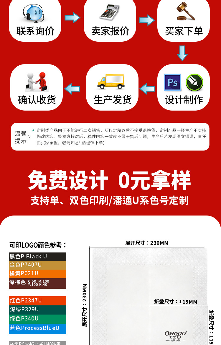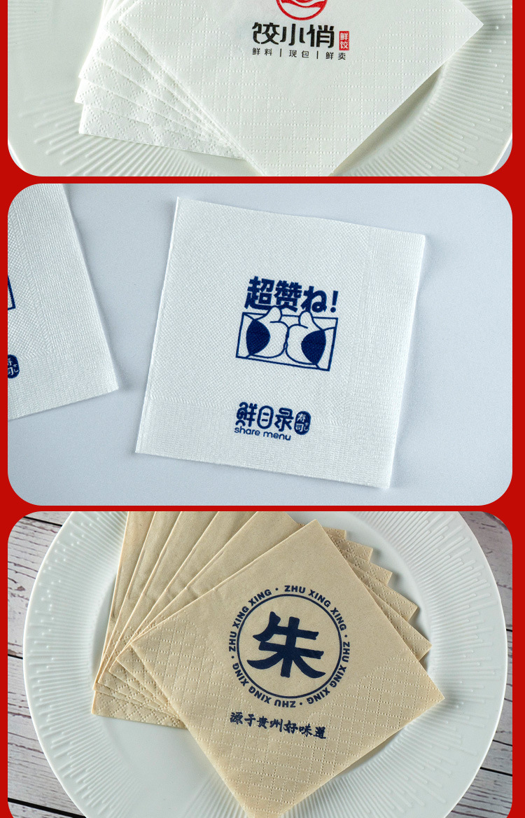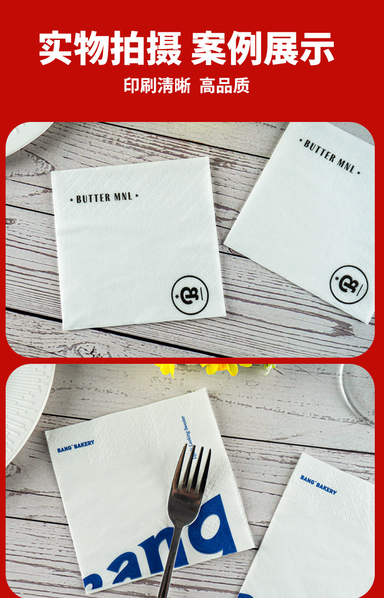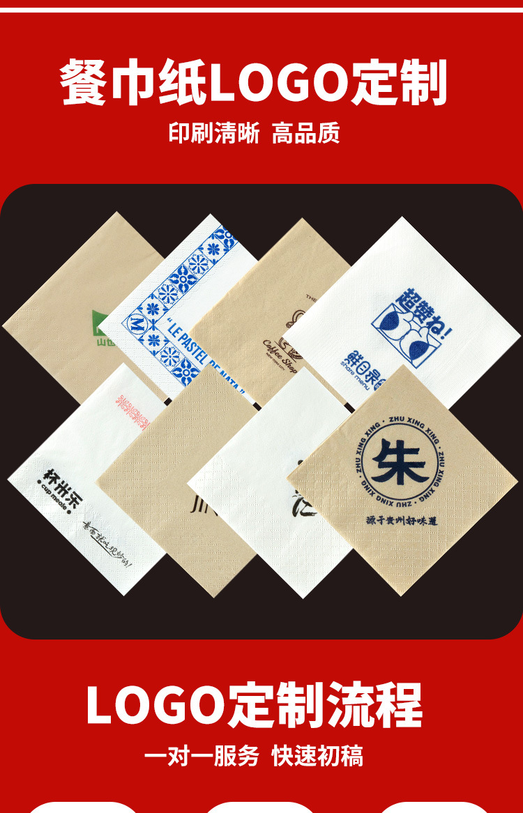 纸巾定制可印logo餐巾纸商用印标方巾纸餐饮咖啡店餐厅用外卖方形