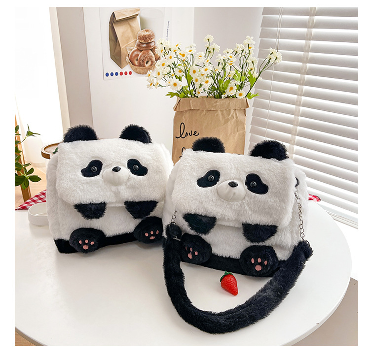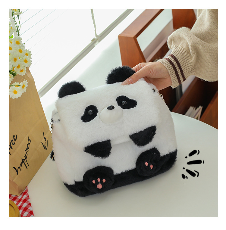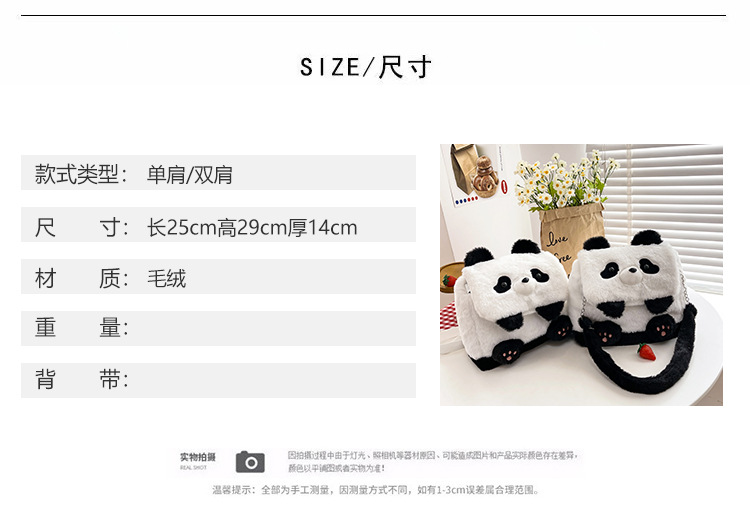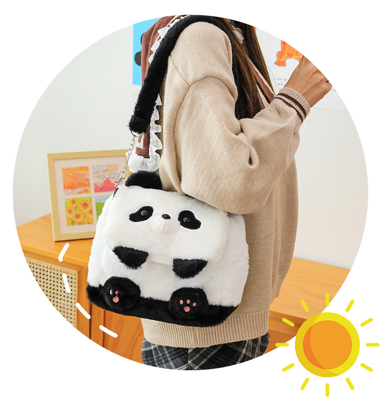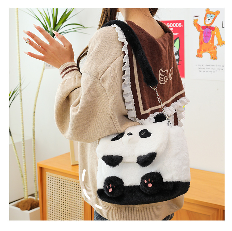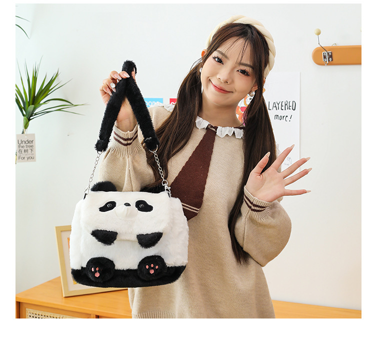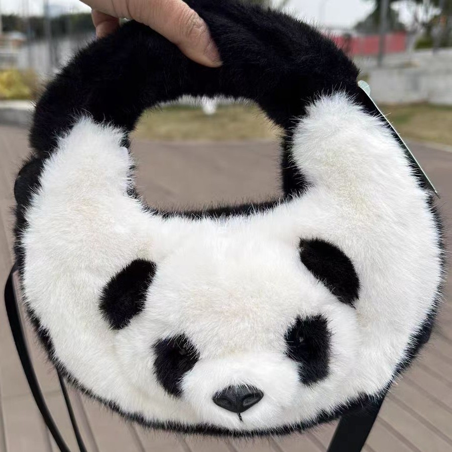 2025新款创意卡通熊猫毛绒单肩包精致可爱玩偶大容量休闲手提包包