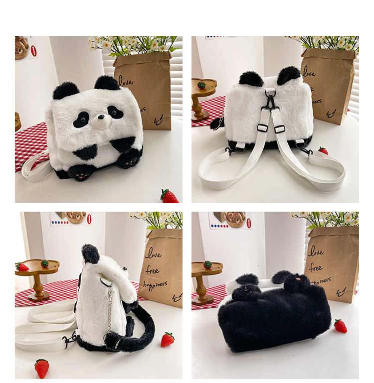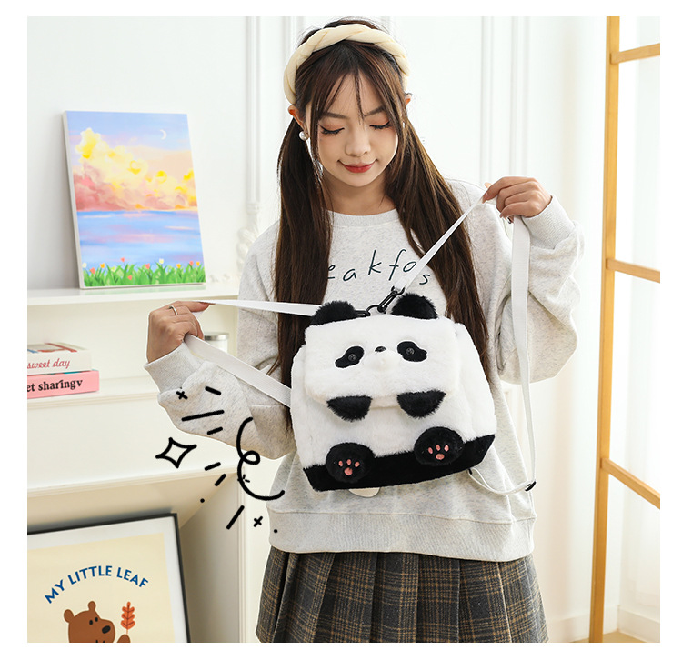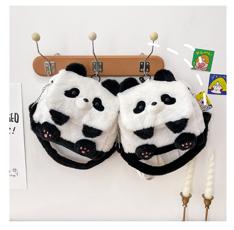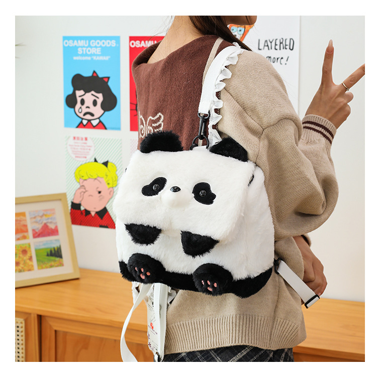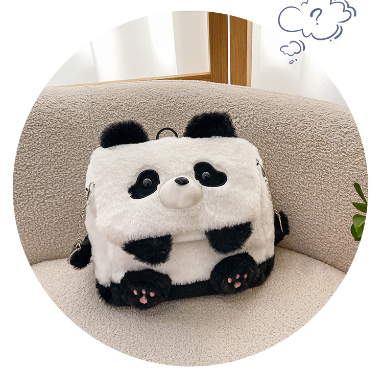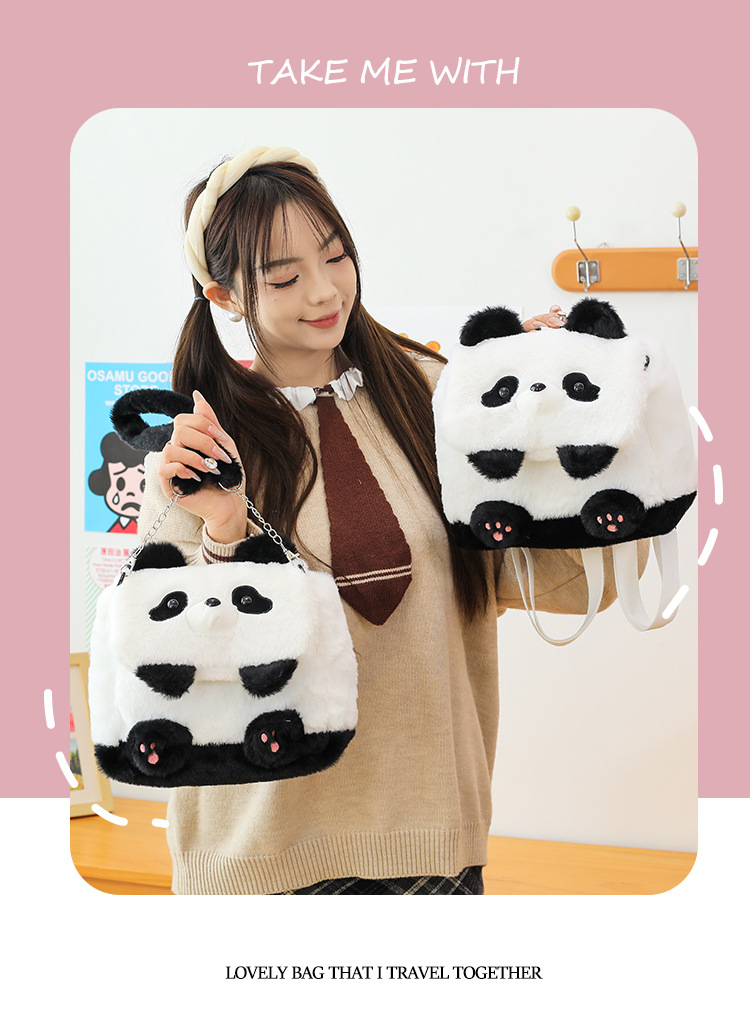 2025新款创意卡通熊猫毛绒单肩包精致可爱玩偶大容量休闲手提包包