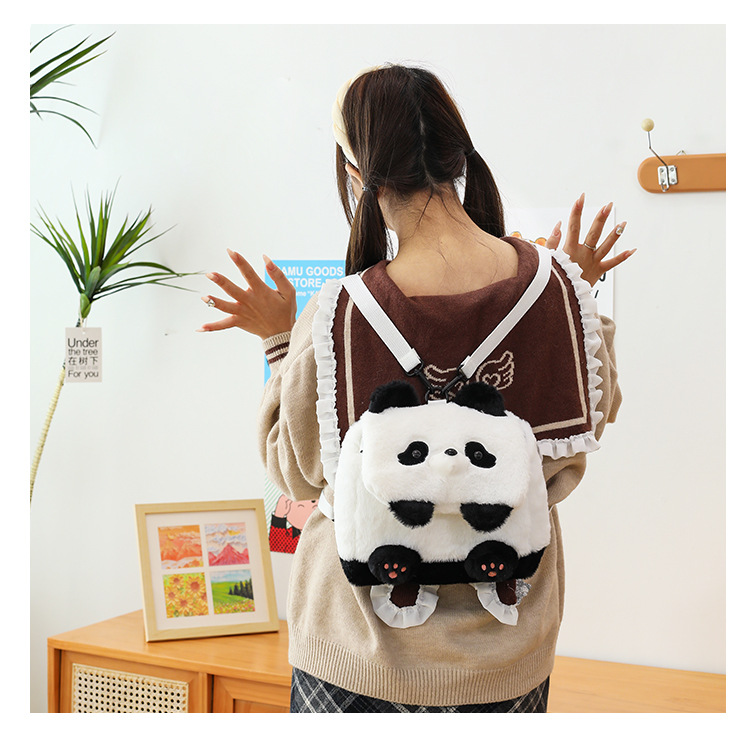 成都熊猫网红基地花花新款双肩包毛绒背包公仔可爱幼儿小背包熊猫