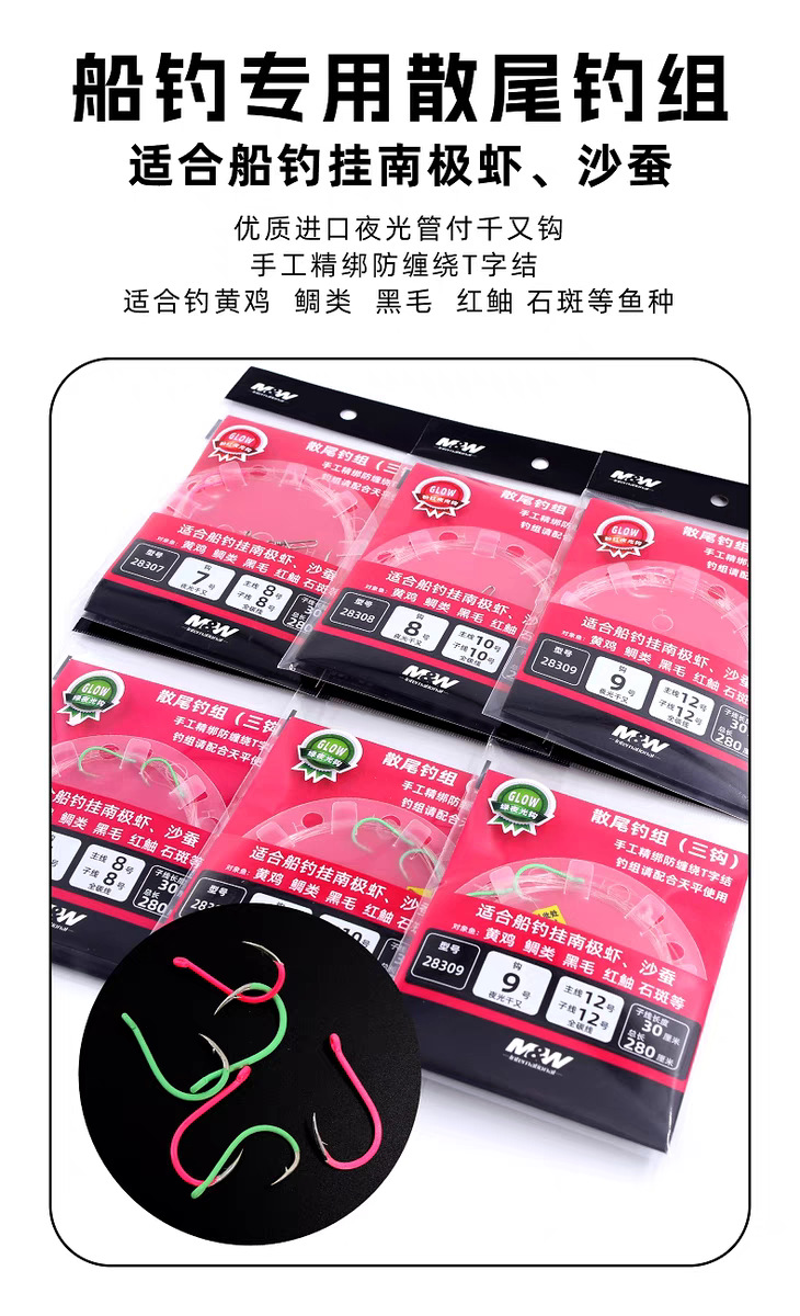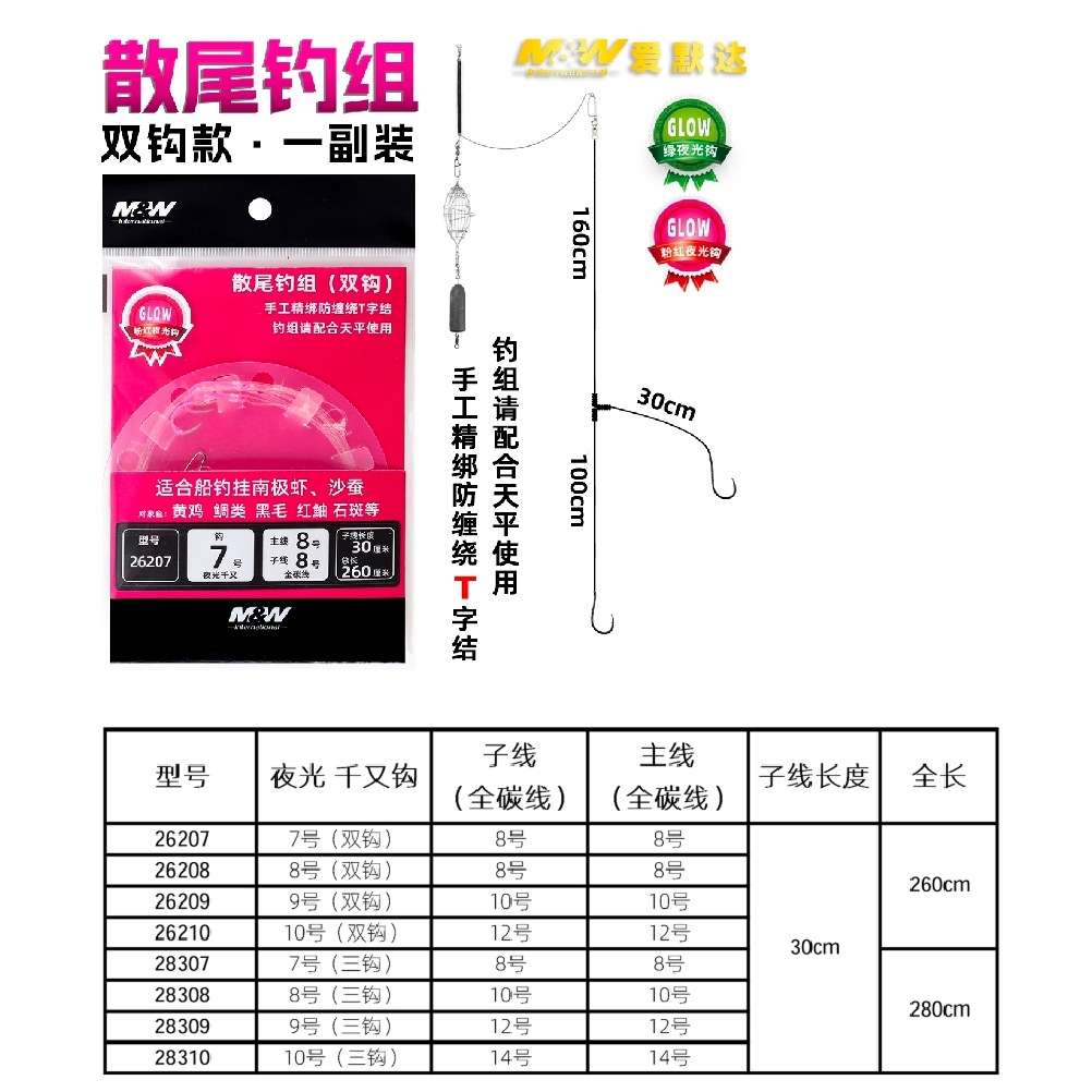MW舟山大黄魚釣りセットフックダブルフック夜光船釣りフック海釣り真鯛黄姑魚線セット西格炭素線