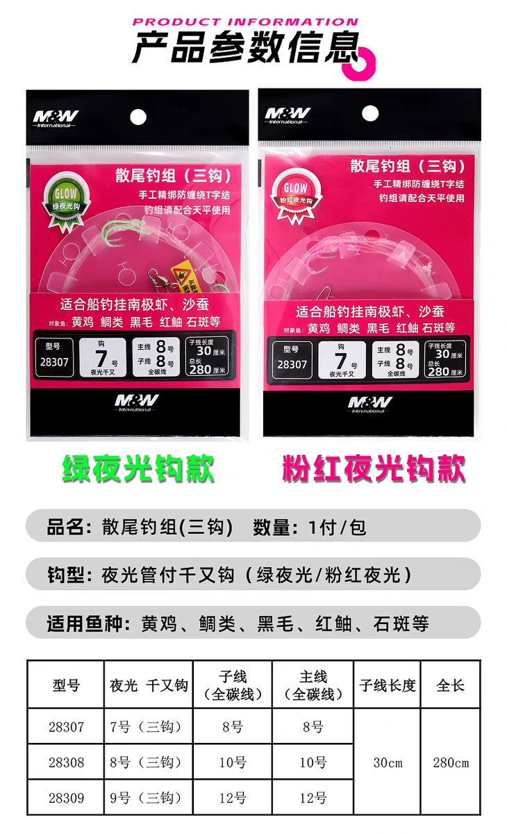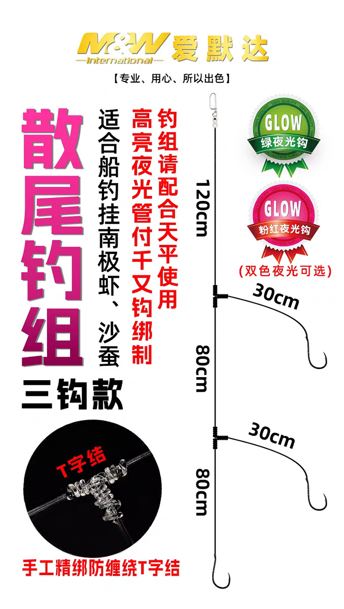 MW立魚仕掛夜光千又フック海船釣りいかだ釣り黒彫刻真鯛黄鶏石斑3フック釣りグループ