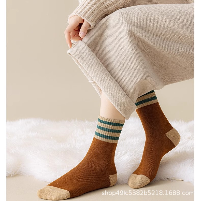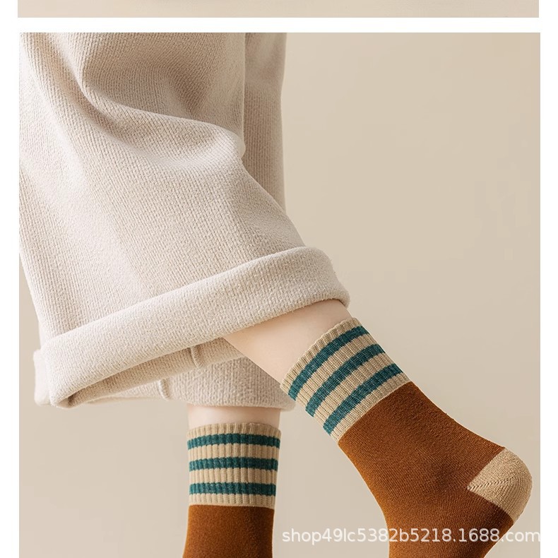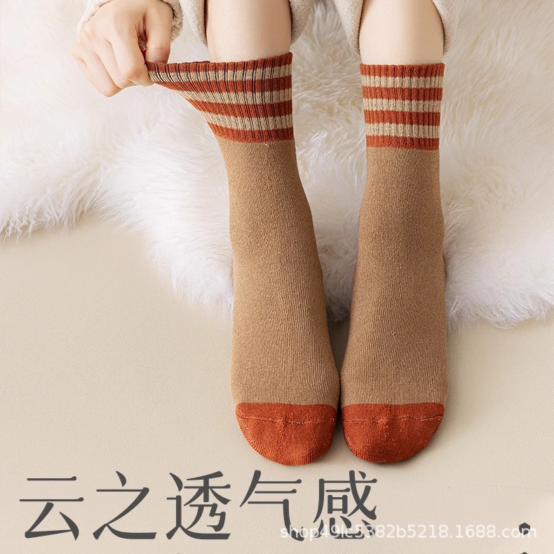 毛圈袜子女秋冬季中筒袜加绒加厚毛巾袜条纹美拉德长袜保暖地板袜