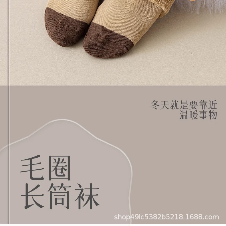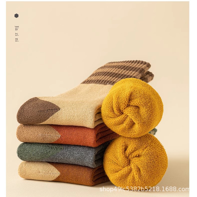 袜子女秋冬加厚加绒保暖中筒袜男士防寒长筒地板袜冬天厚款毛圈袜
