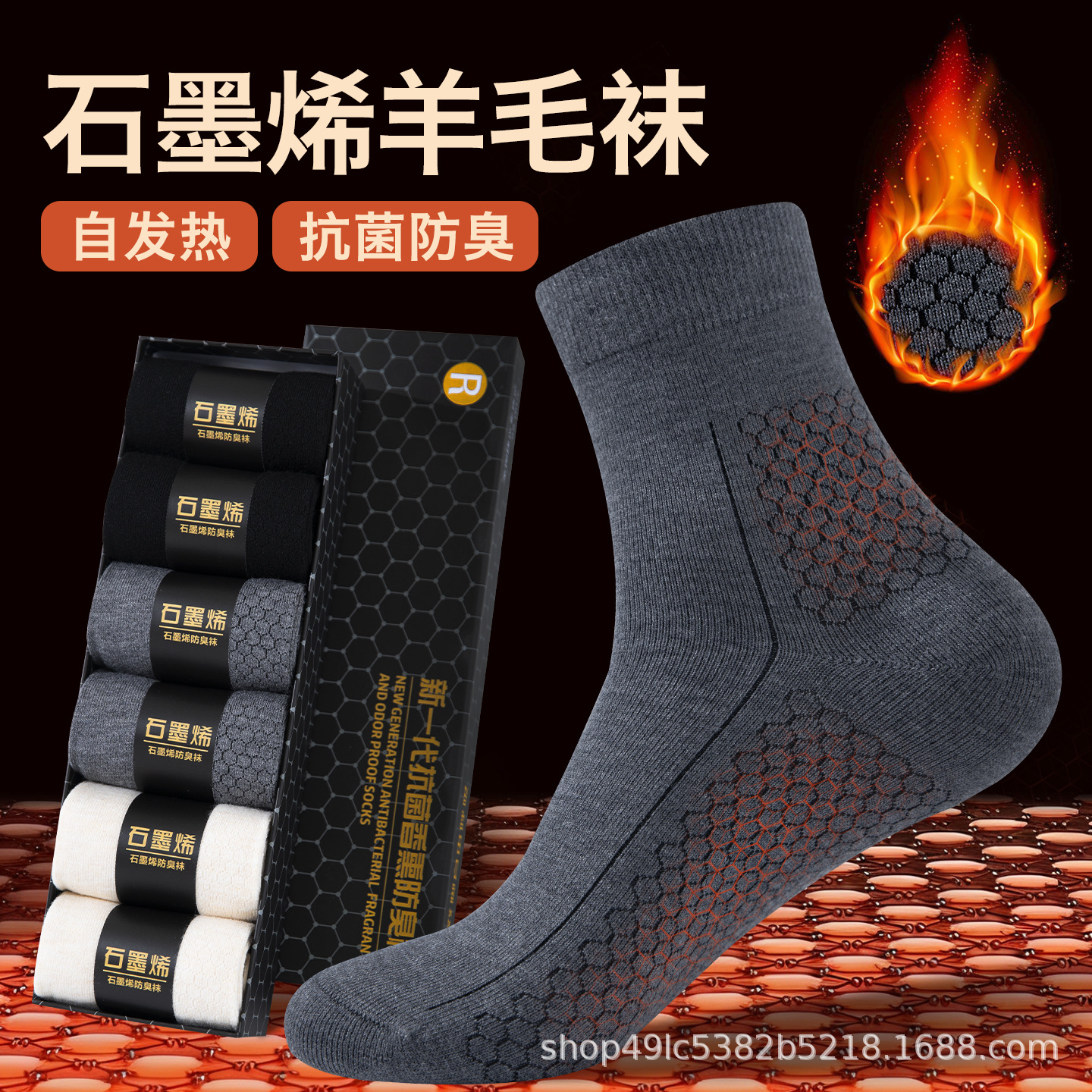 石墨烯羊毛袜子秋冬季男士短袜抗菌防臭中筒吸汗保暖商务休闲长袜