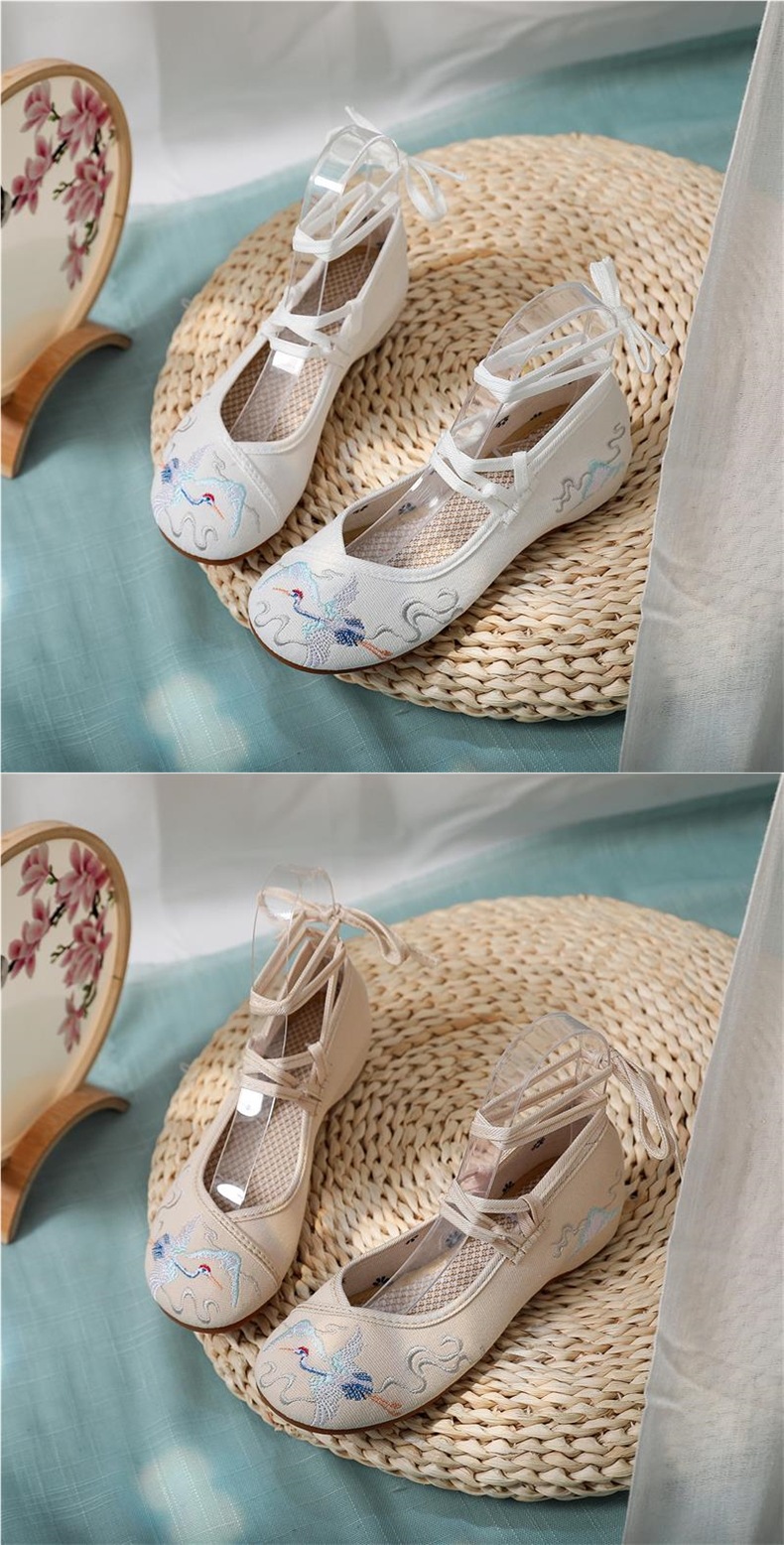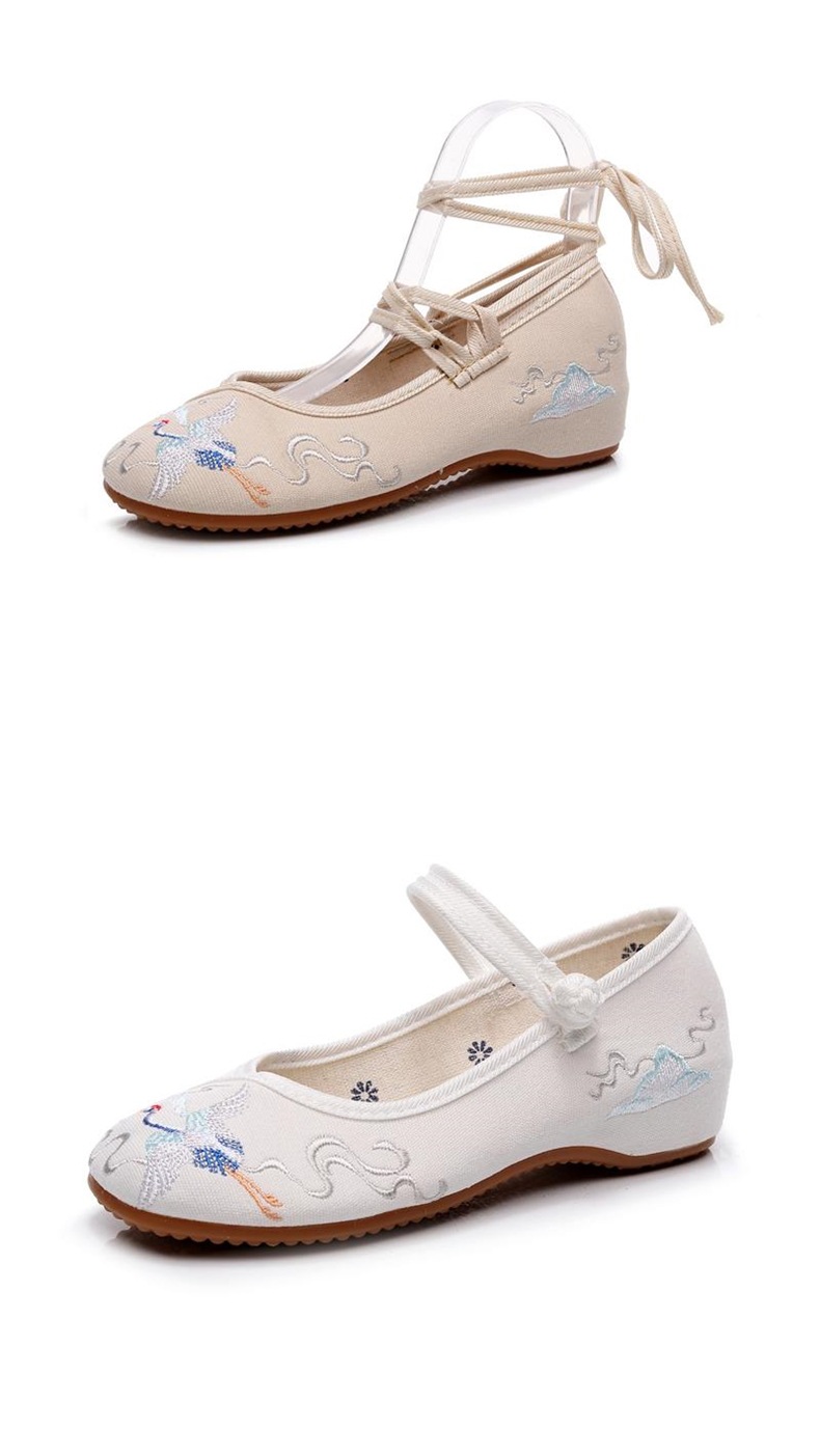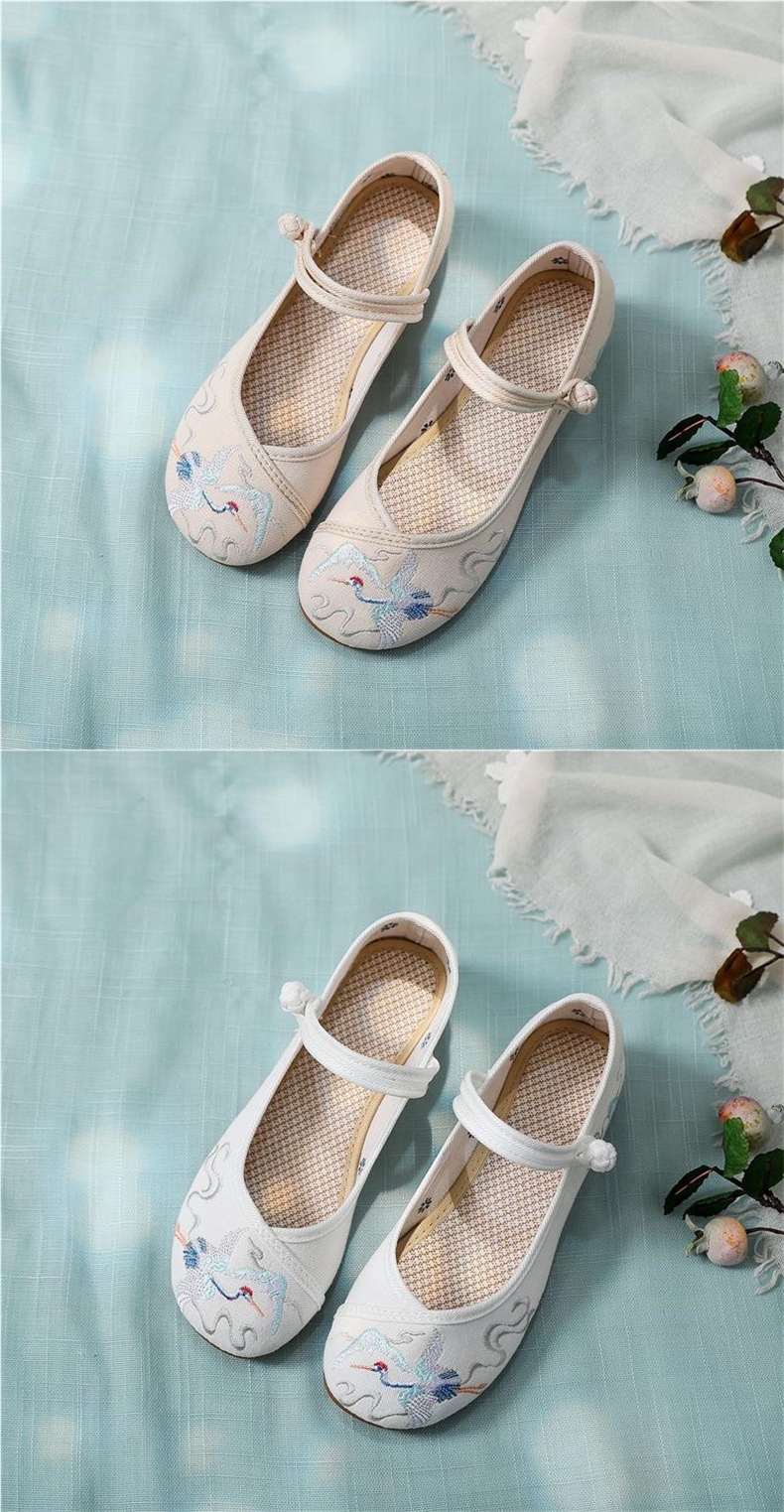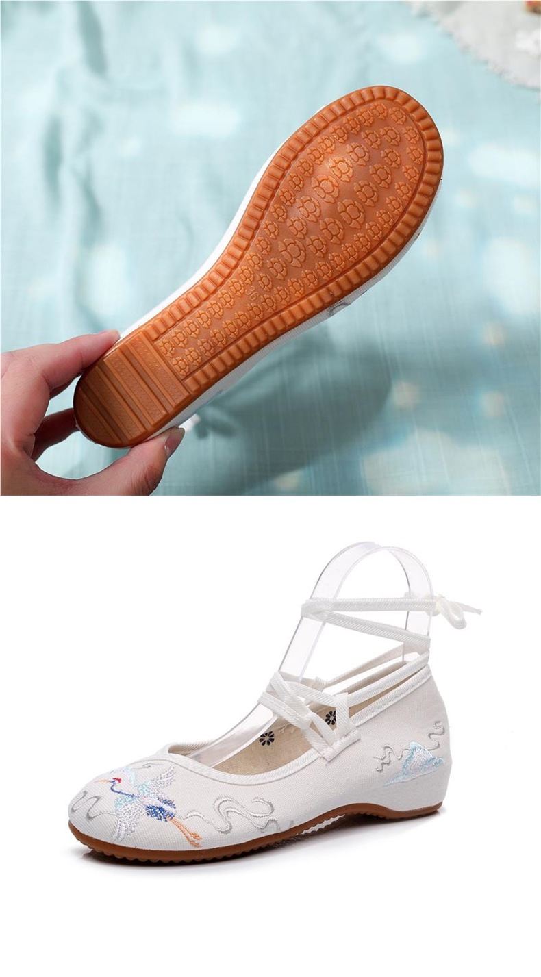 古風の靴の坂と漢服の靴の女性の純白の低いヒールの中で高くなる刺繍の靴の女性の民族の風の中国風の布の靴の女性