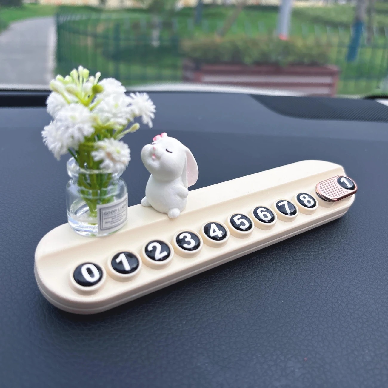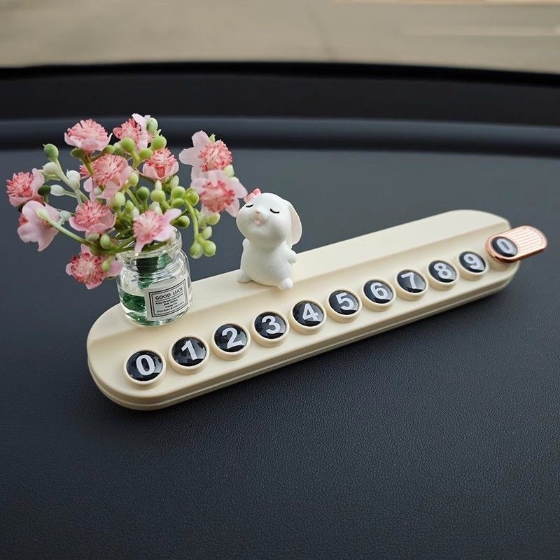 招财猫汽车临时停车牌女挪车电话牌车载手机号码牌可隐藏装饰用品