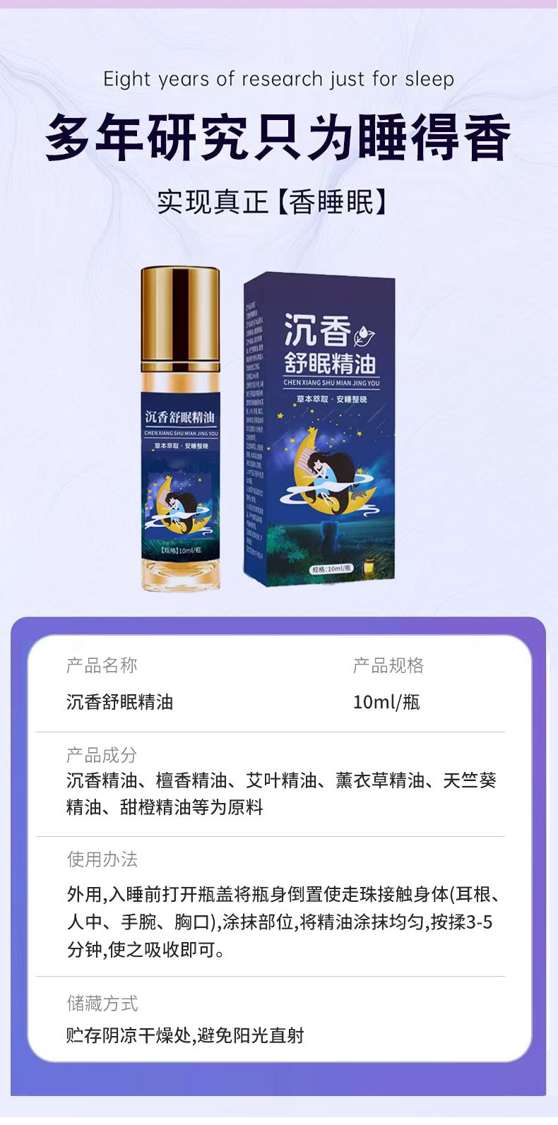 沈香スリーピングエッセンシャルオイルは心と体を落ち着かせ、ストレスを軽減し、リラックスさせます。おやすみバームは安眠エッセンシャルオイルです。