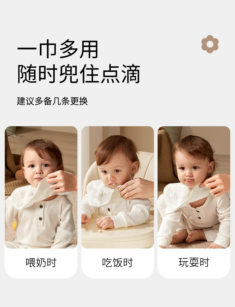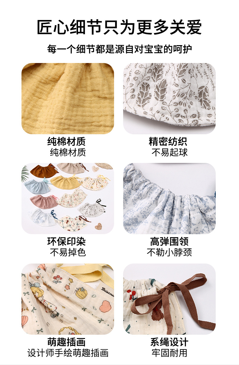 口水巾a类围嘴防水北欧风纯棉男宝ins秋冬花瓣韩版a类双面防水