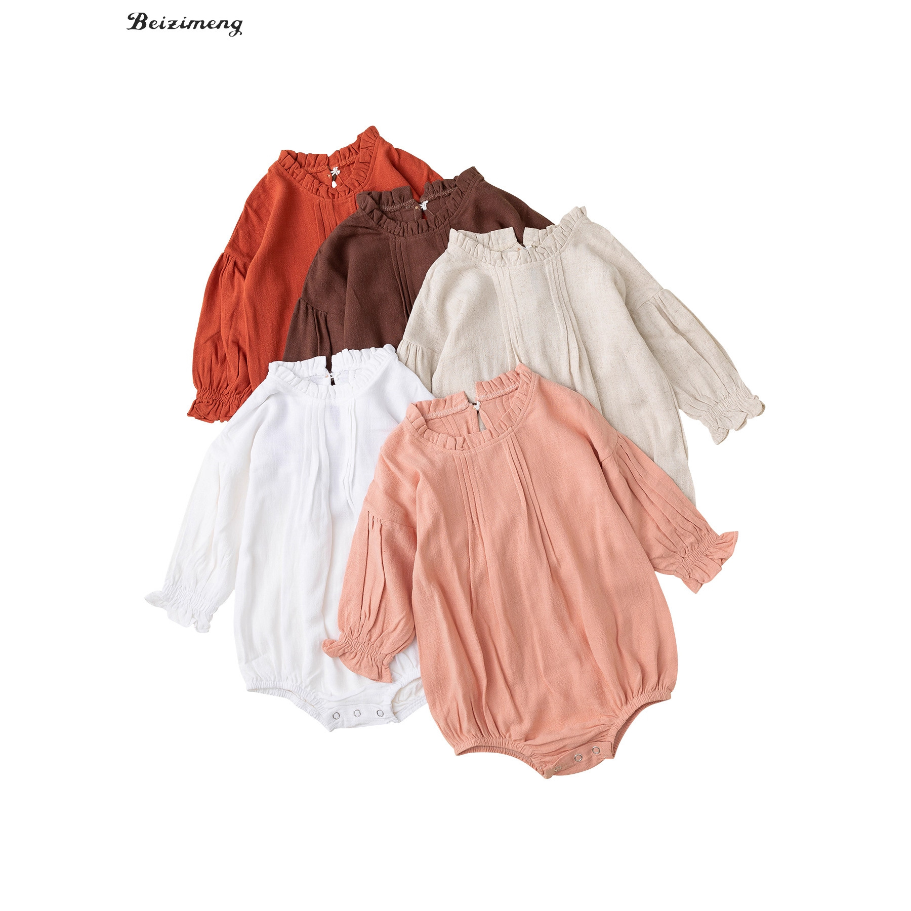 インアマゾン人気のクロスボーダーベビージャンプスーツ新しい無地ロンパースリネン通気性ハーネス女性ベビー服