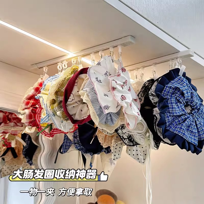 时尚大肠发圈展示杆女生衣柜免打孔壁挂头绳发饰方巾收纳架批发
