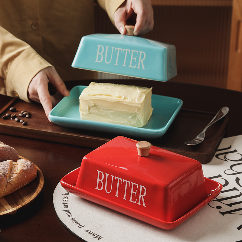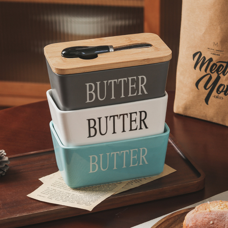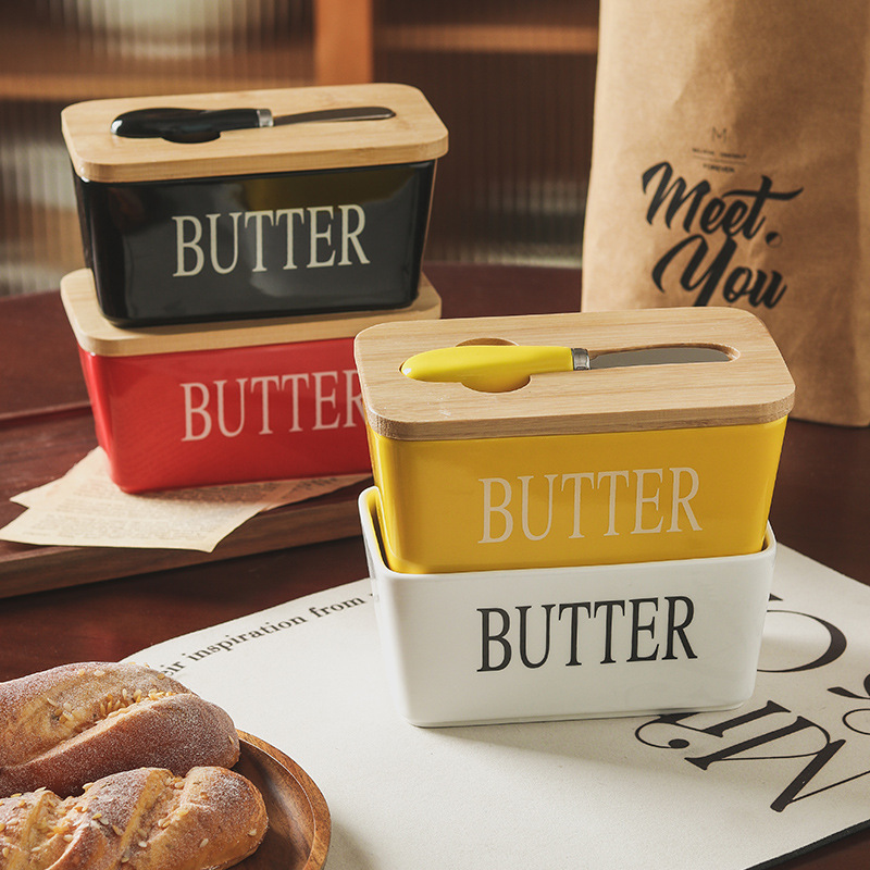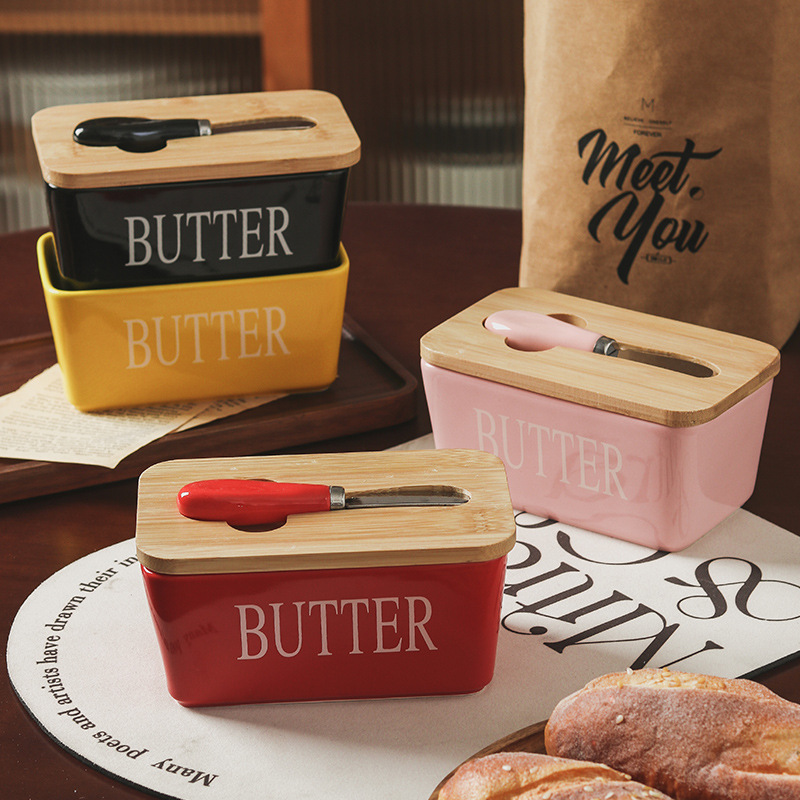 長方形のバター箱アマゾンの国境を越えたレストランの洋式家庭用チーズ箱バター皿陶磁器バター箱ナイフ付き