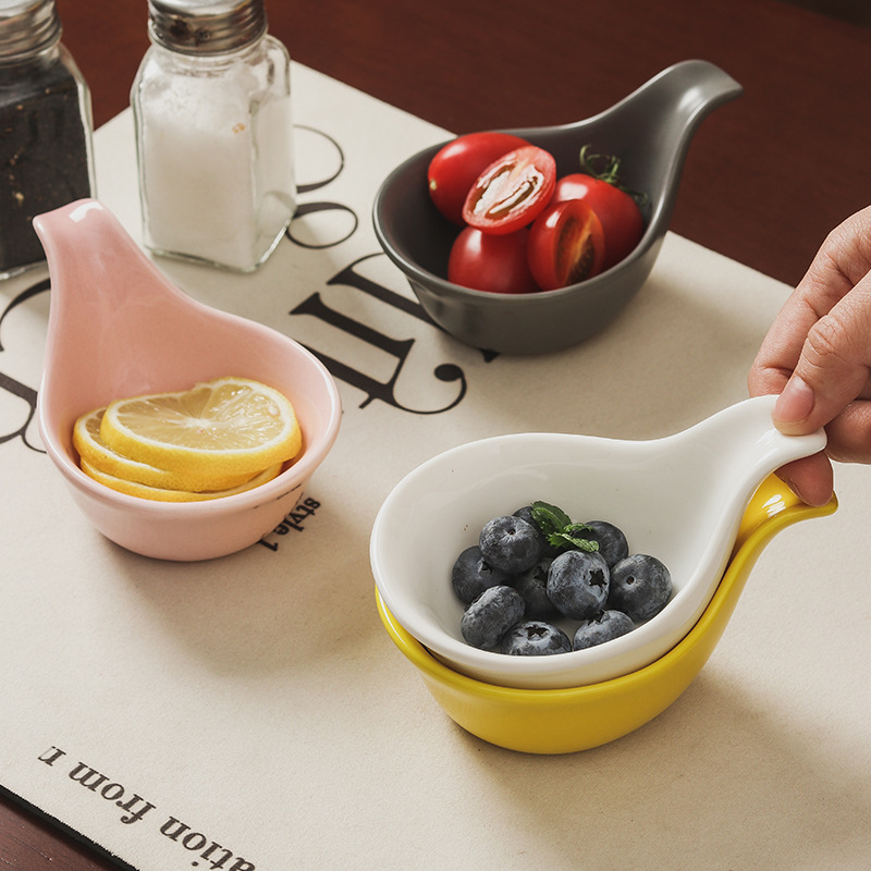 陶磁器の味噌と酢の皿の軽食の皿の日本料理の皿に酢の皿の鍋の調味料の皿をつけます。