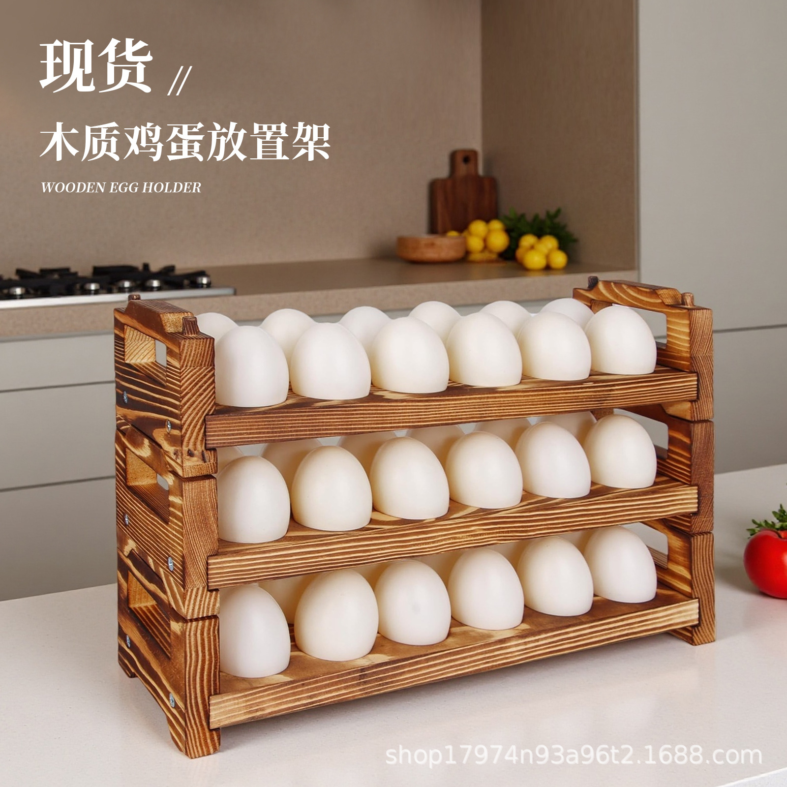 现货多层鸡蛋托跨境木质鸡蛋架鸡蛋盒置物架可堆叠厨房鸡蛋收纳架