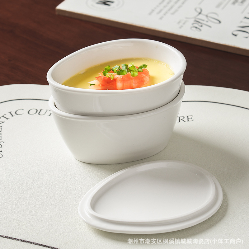 陶器製家庭用蒸しボウル、蒸し卵ボウル、蓋付き炊飯器専用ボウル、純白一人用煮込みカップ、卵焼きボウル