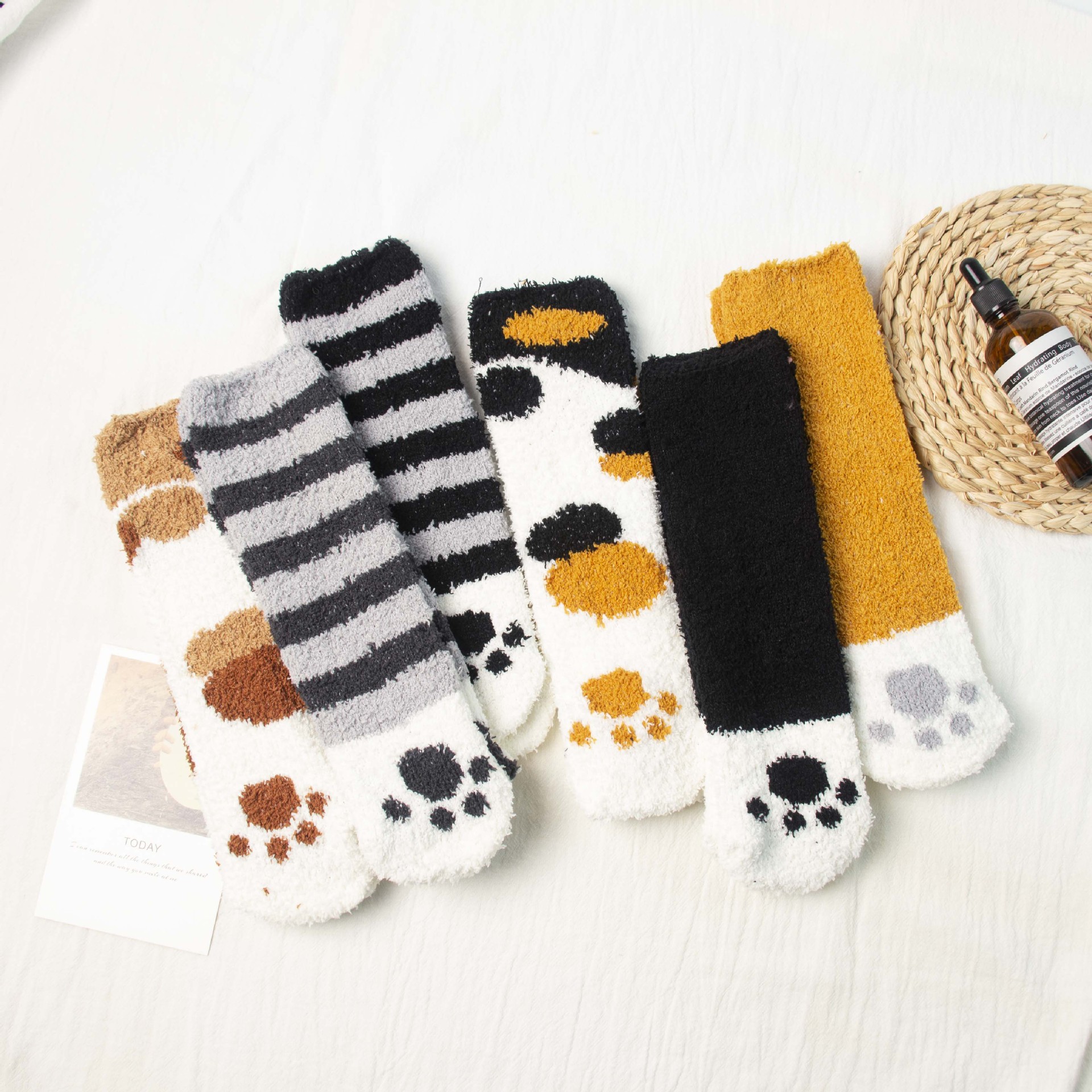 サンゴの毛の麻の花の睡眠の靴下の女性の保温の靴下の中で筒の家の床の靴下の秋冬のタイプの雪の靴下の猫の爪の靴下