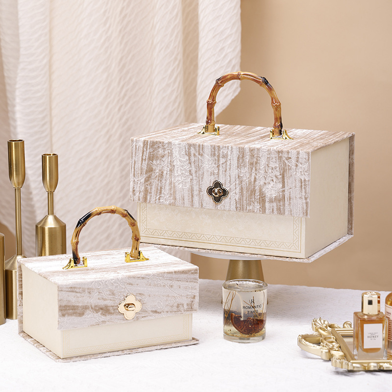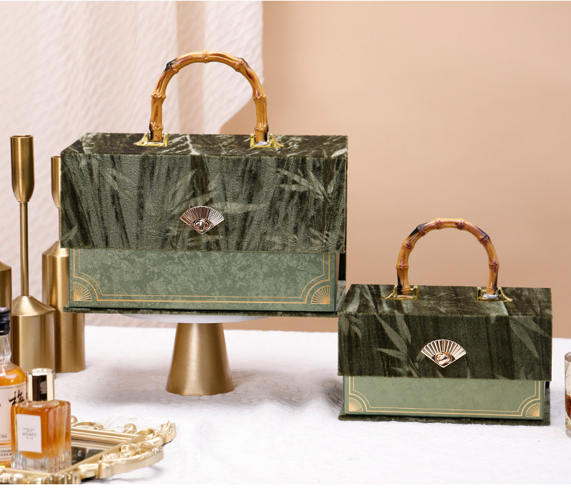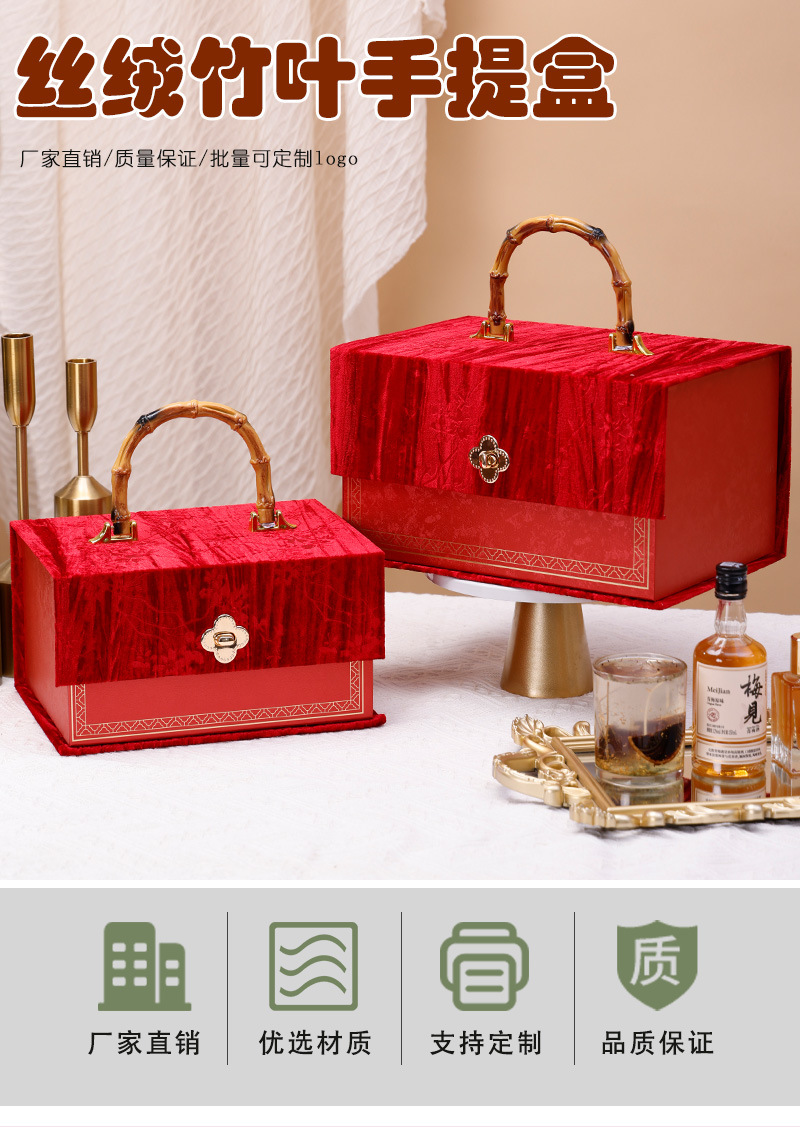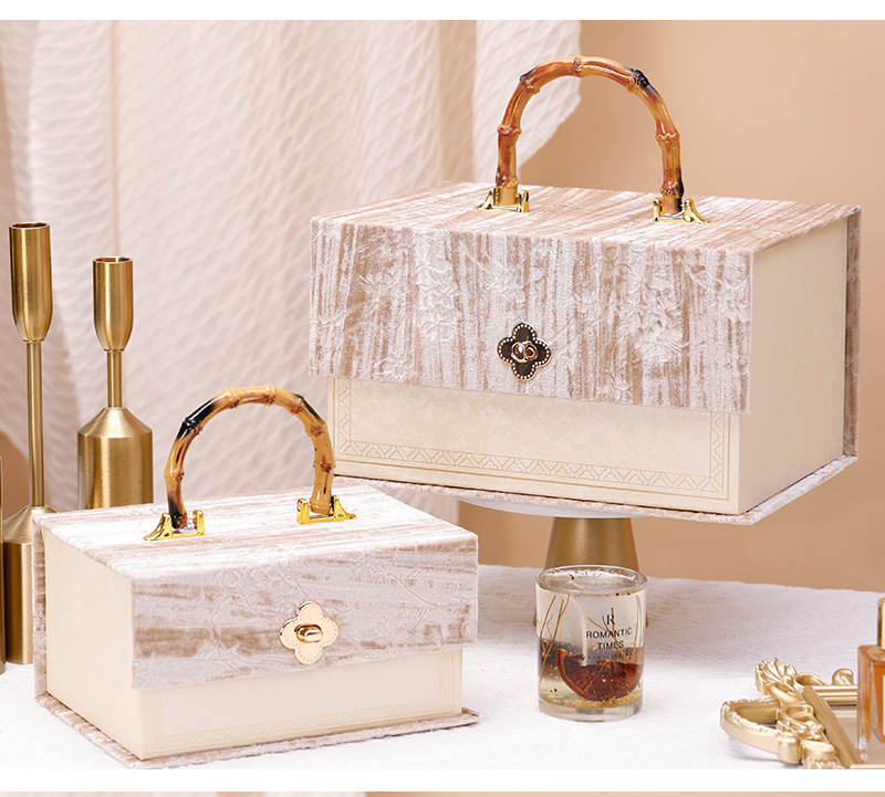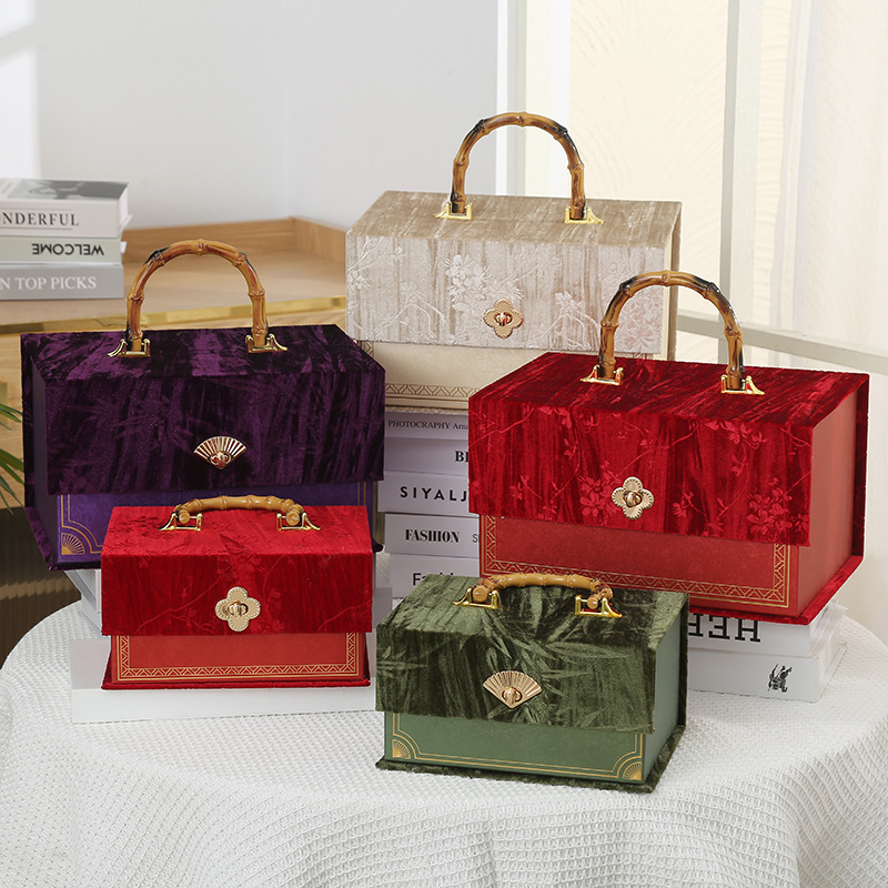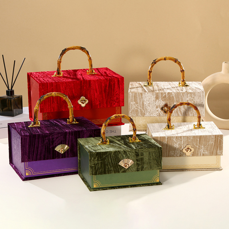 新しいベルベット竹祭り手提げケースins高級感お土産ケース結婚花嫁お返し喜糖箱ギフトケース