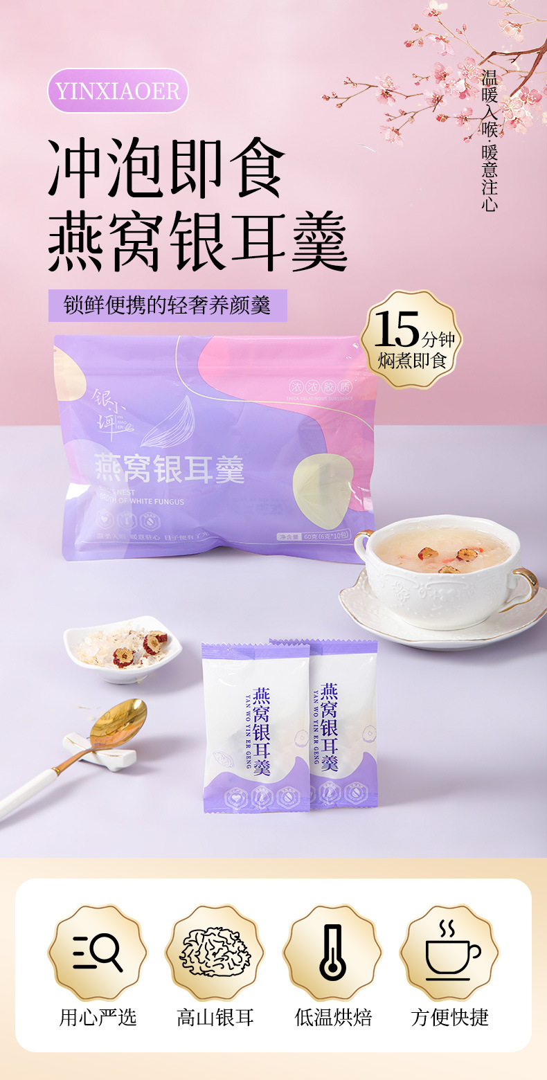 冻干燕窝银耳羹即食免煮早餐代餐孕妇食用高山白木耳30包礼盒装
