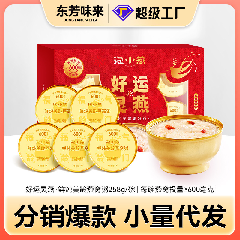 【泡小燕年货礼盒】好运灵燕窝礼盒即食燕窝粥高档伴手礼258g*5碗