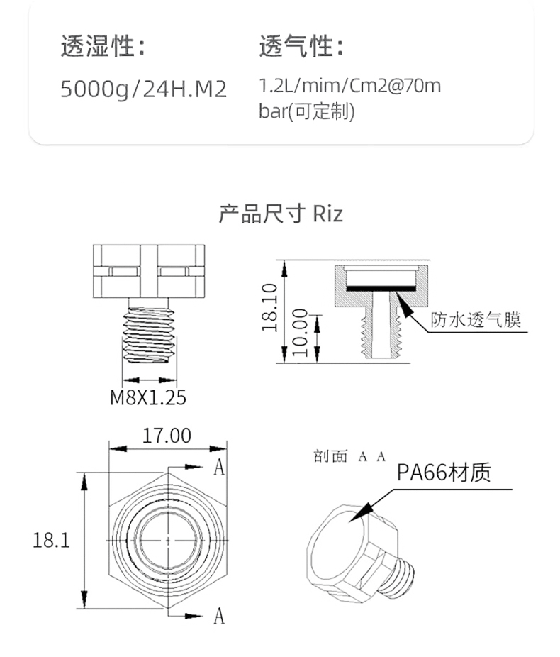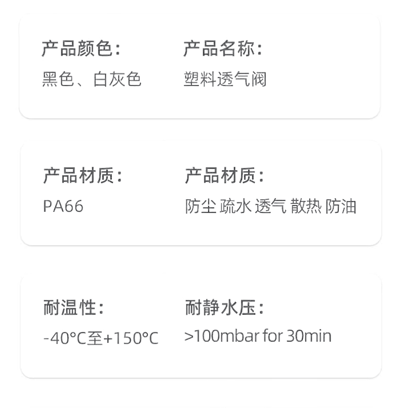 尼龙透气阀防水透气阀呼吸阀排气阀灯具配件排气螺丝塞气体交换阀