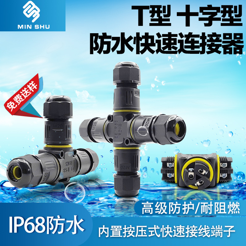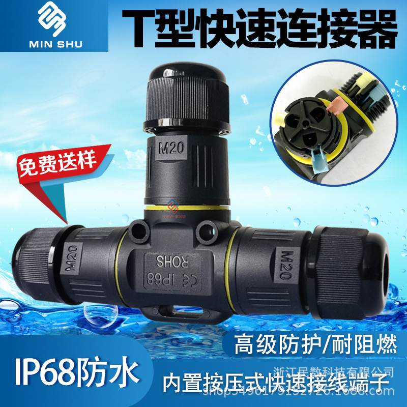 T型防水クイックコネクタ三方3芯5芯配線端子ip68ケーブル接続線引抜き式アウトドア