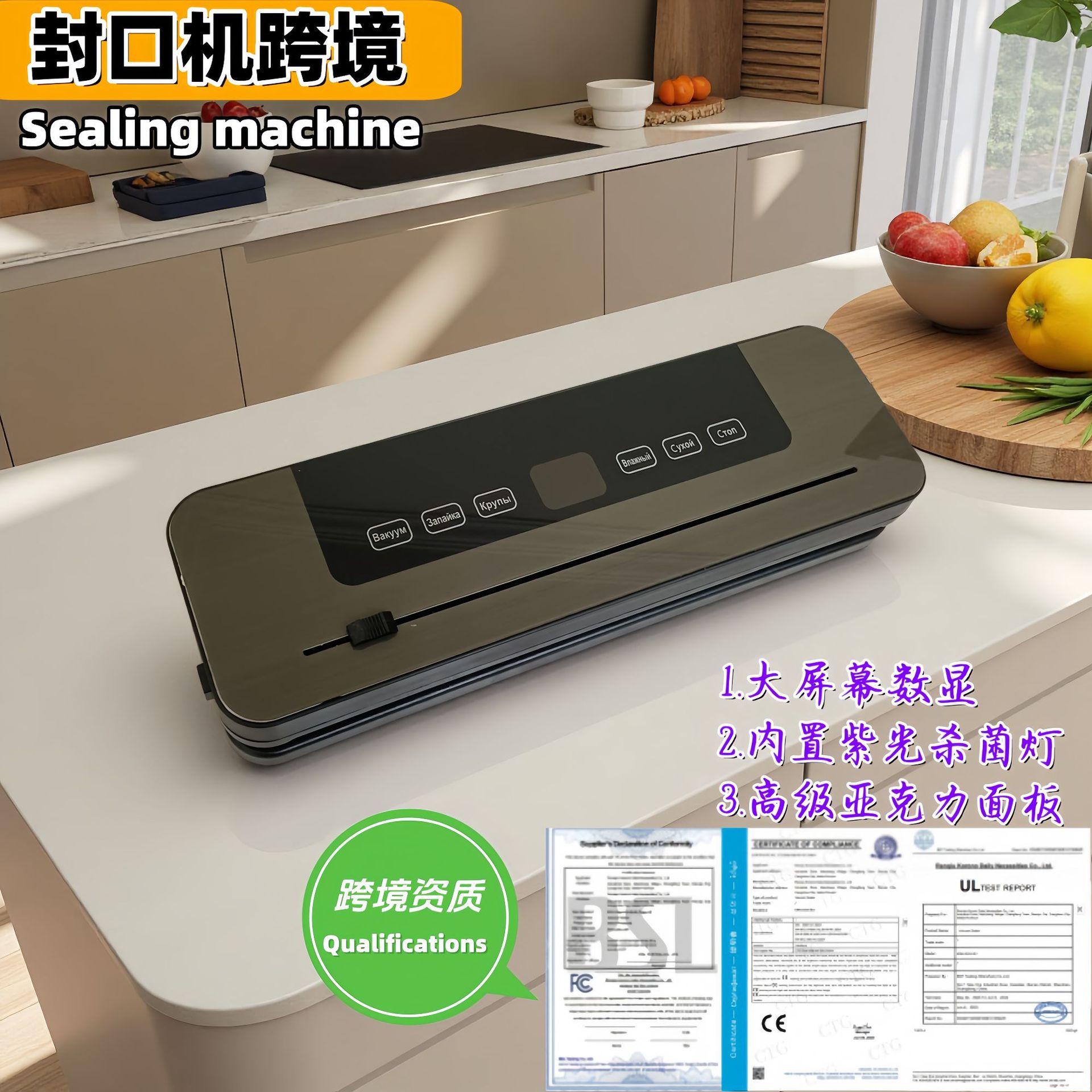 跨境俄罗斯小型家用真空封口机 小型全自动触屏真空保食品封口机