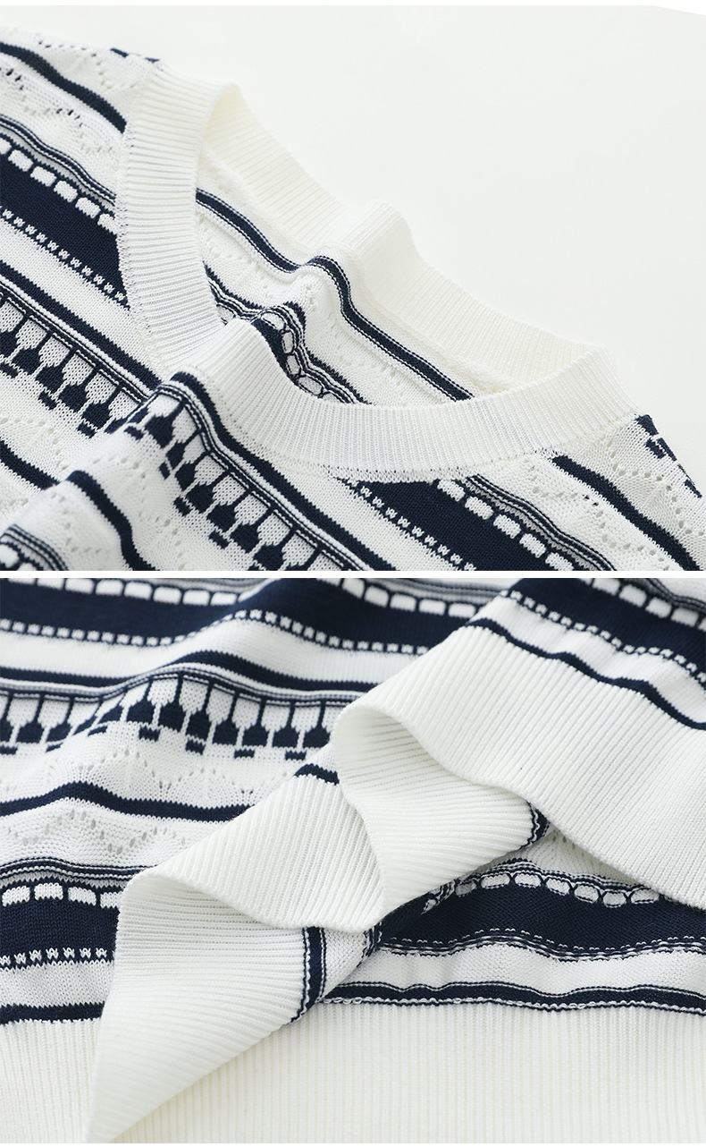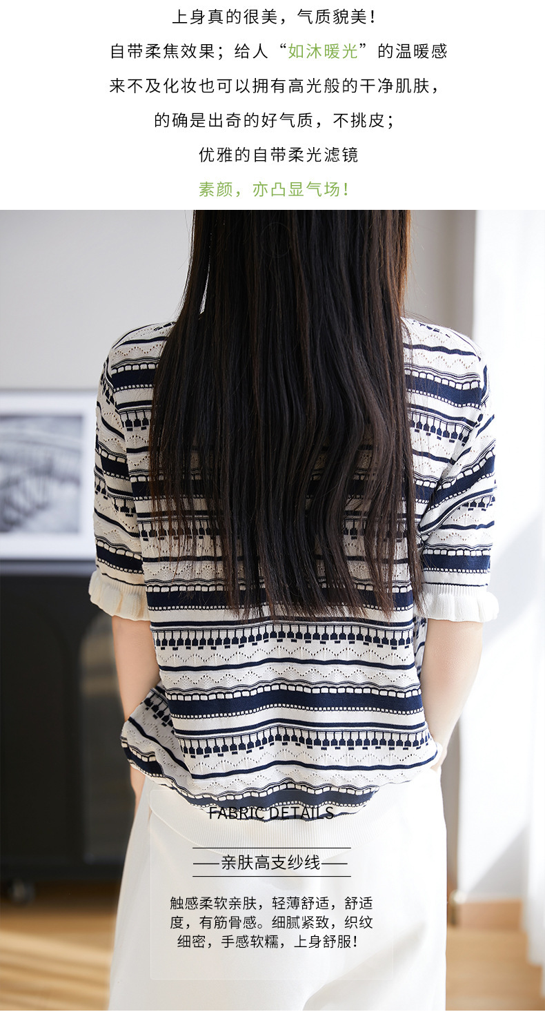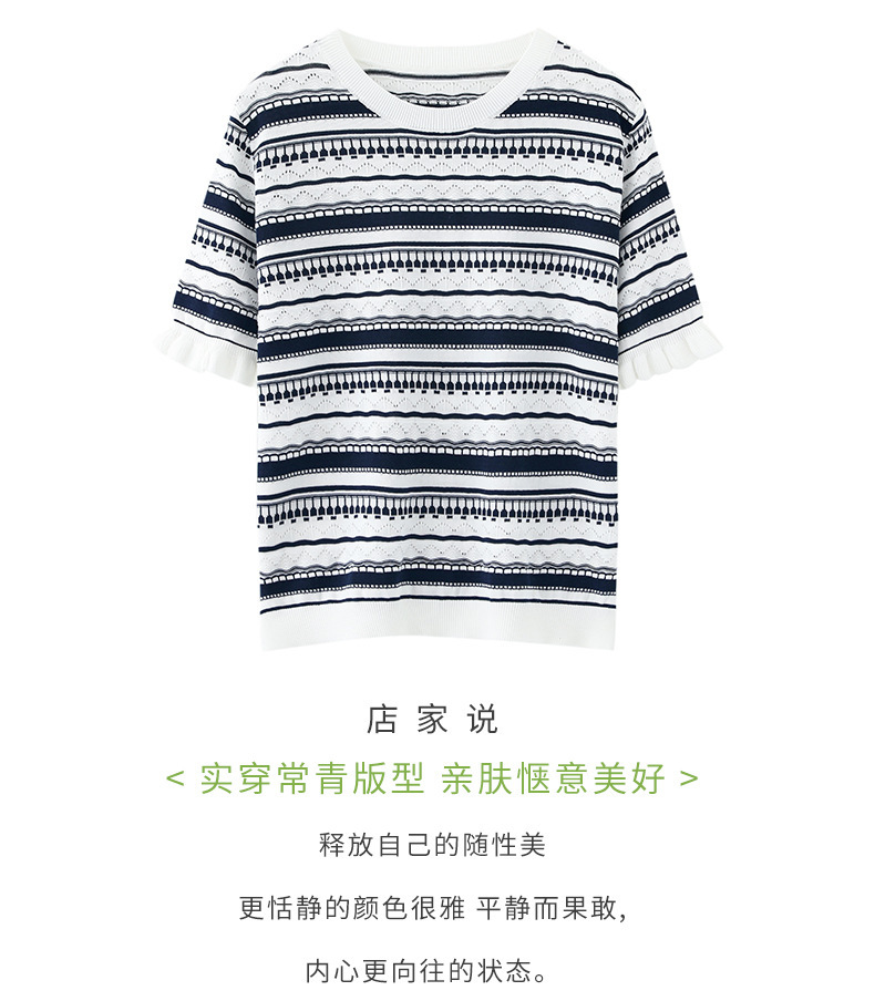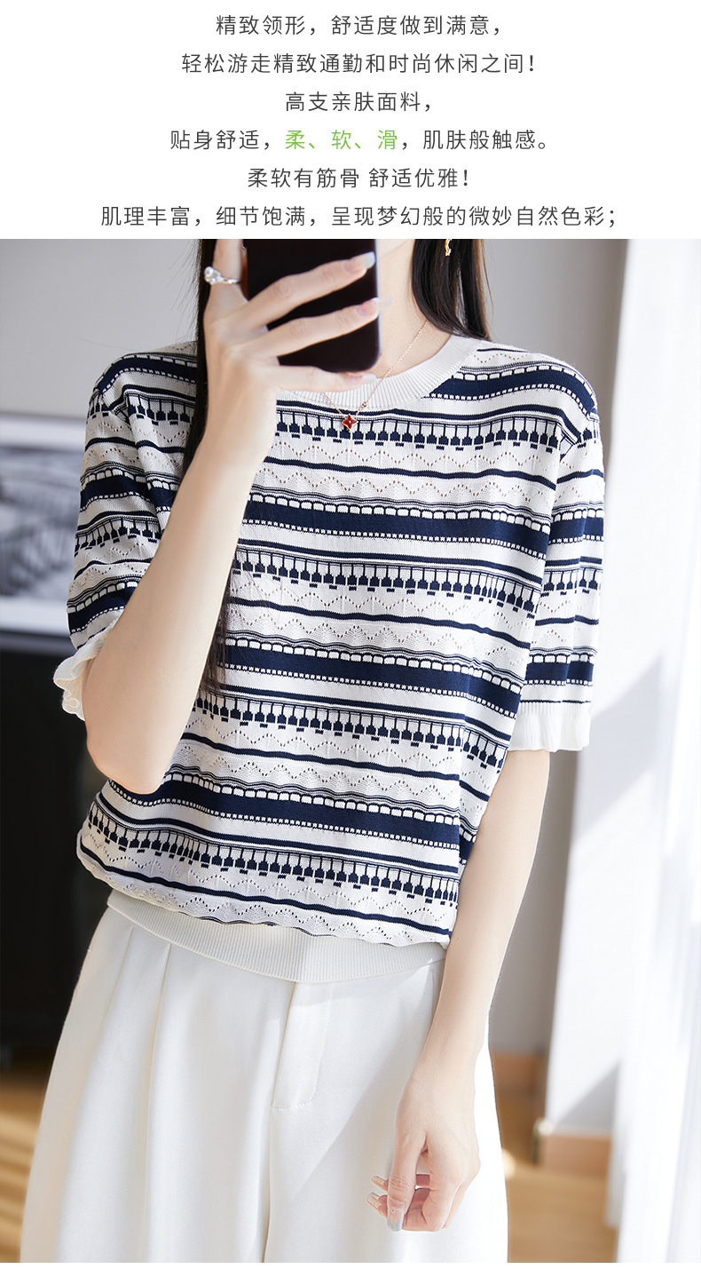 波紋ジャカードニットシルクのライゼルの清涼なハスの葉の縁の丸首のニットの半袖のtシャツの女性の上着