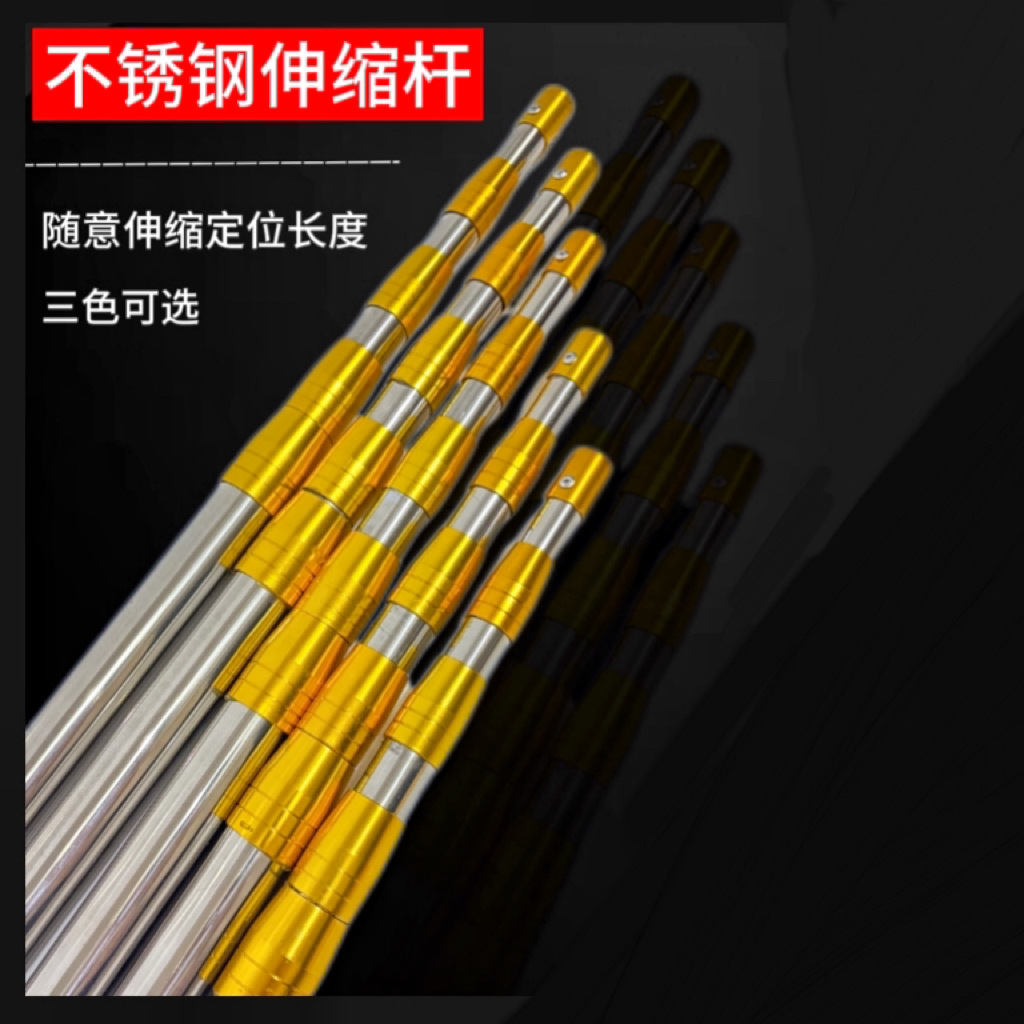 批发不锈钢抄网杆伸缩杆定位杆钓鱼超硬加厚伸缩定位家用不锈钢杆