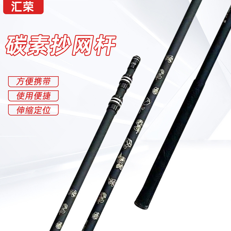 黑金碳素可伸缩抄网杆竿调节裸杆户外钓鱼便携大物捞鱼网杆伸缩式