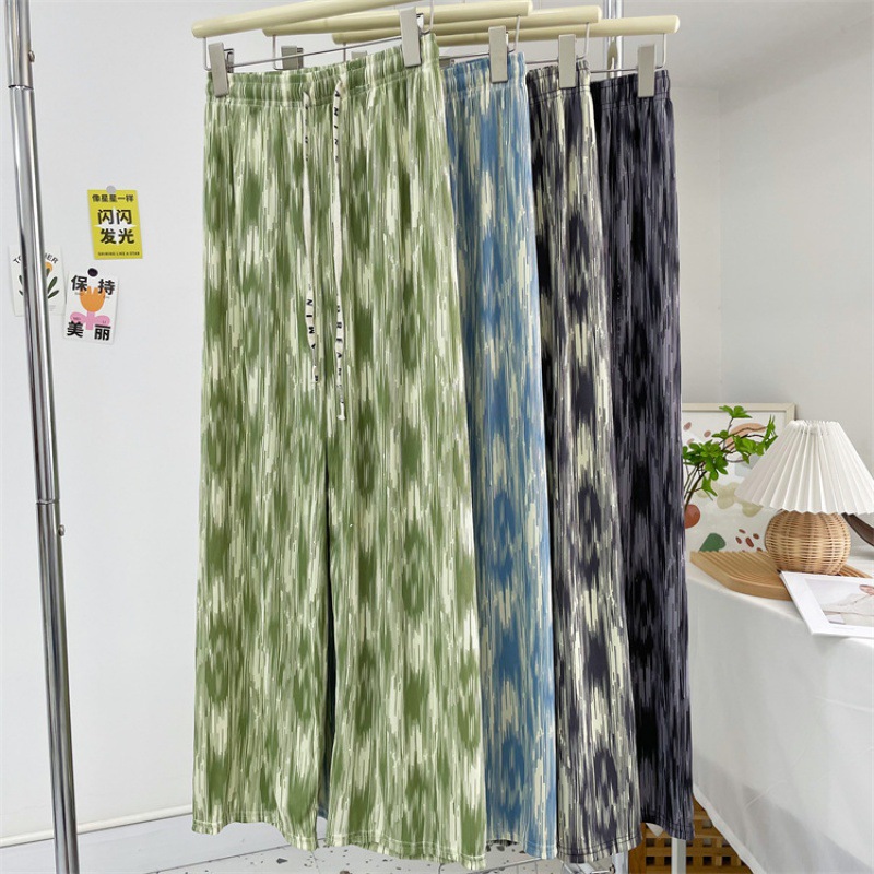 新商品の氷の糸のねじの広腿のズボンの夏の薄いタイプの日よけのズボンの水墨は染めます。