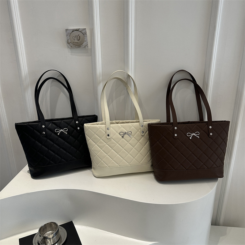 今年流行韩版手提托特包女包2025冬新款蝴蝶结拼接单肩包潮腋下包