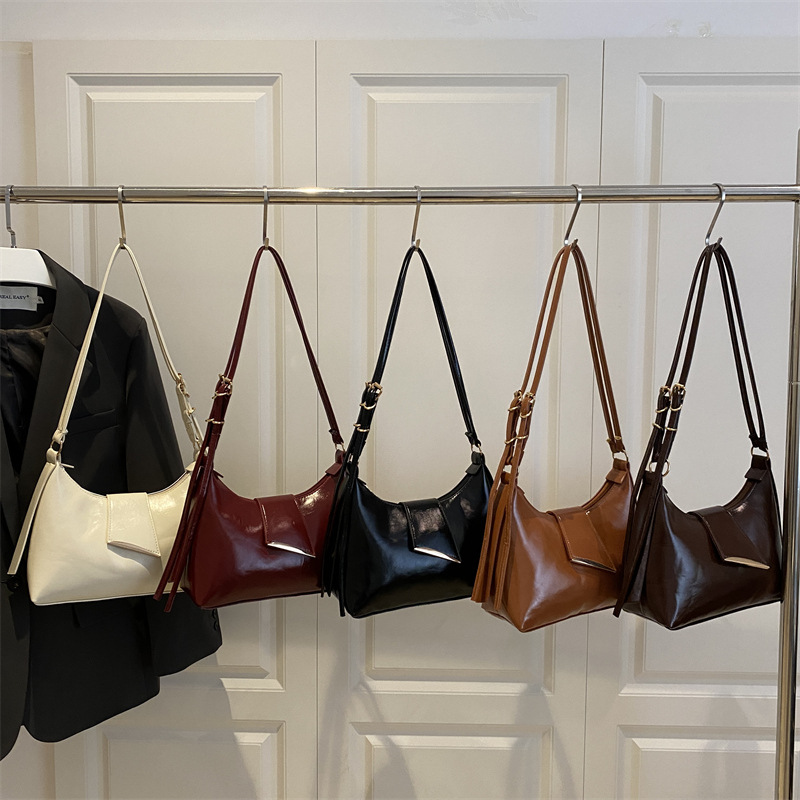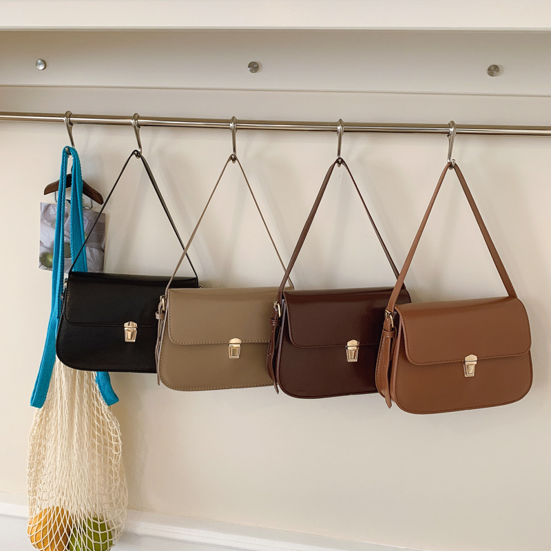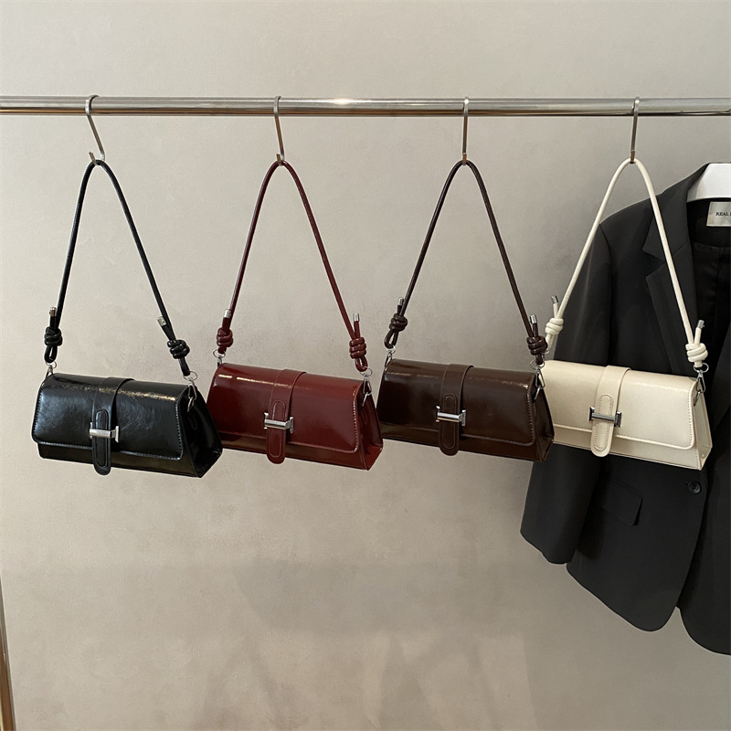2025新款复古简约纯色包包女韩版质感单肩包时尚腋下包个性法棍包