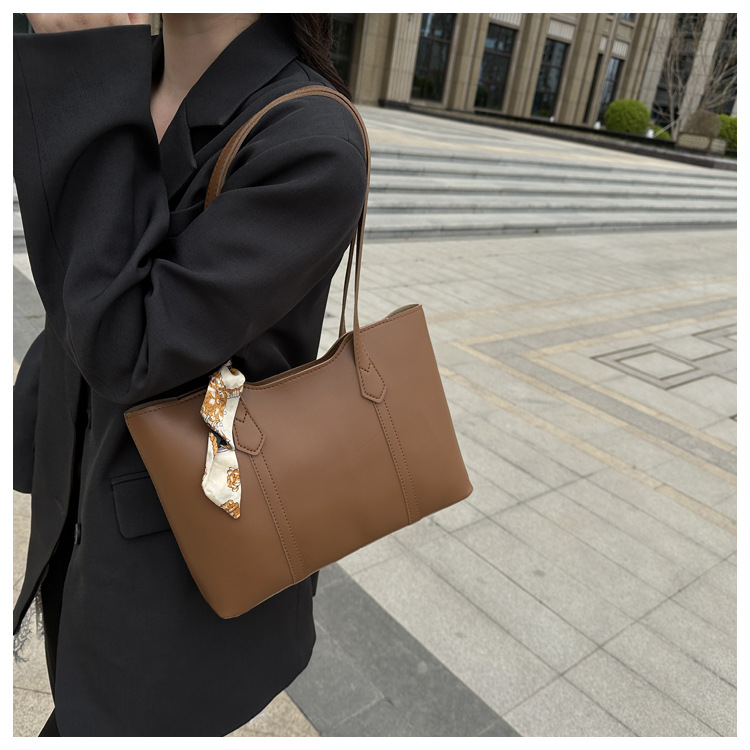 批发森系轻奢手提托特包女包2025秋新款大容量单肩包撞色潮腋下包