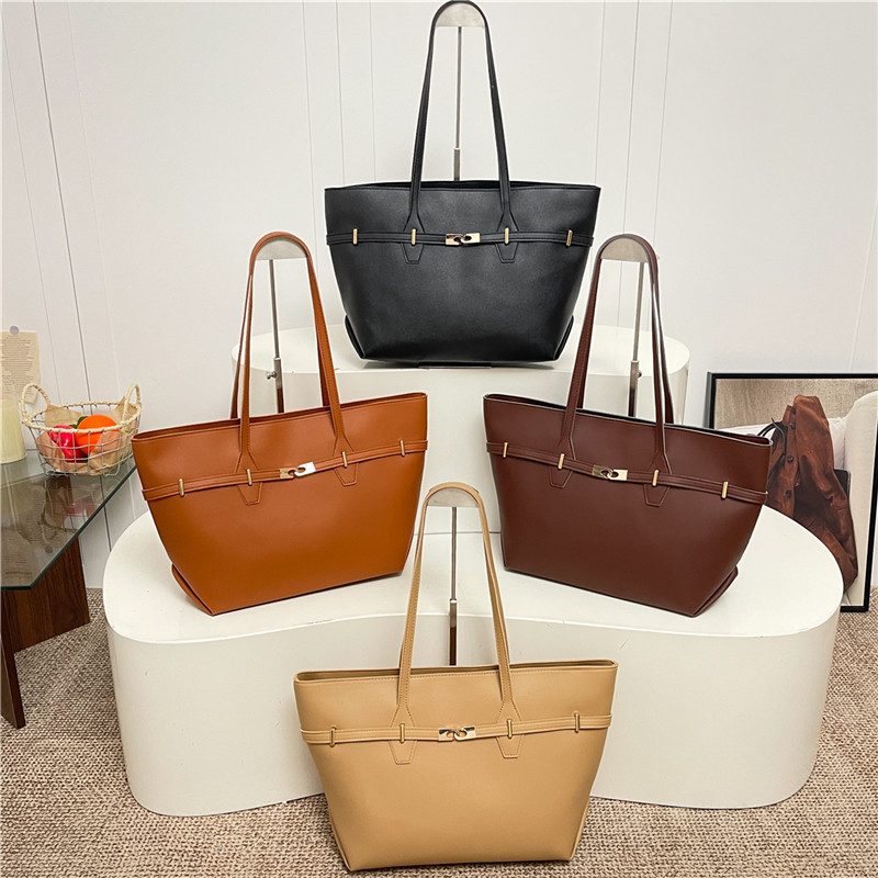 批发韩版轻奢手提托特包女包2025冬新款皮带装饰单肩包百搭腋下包