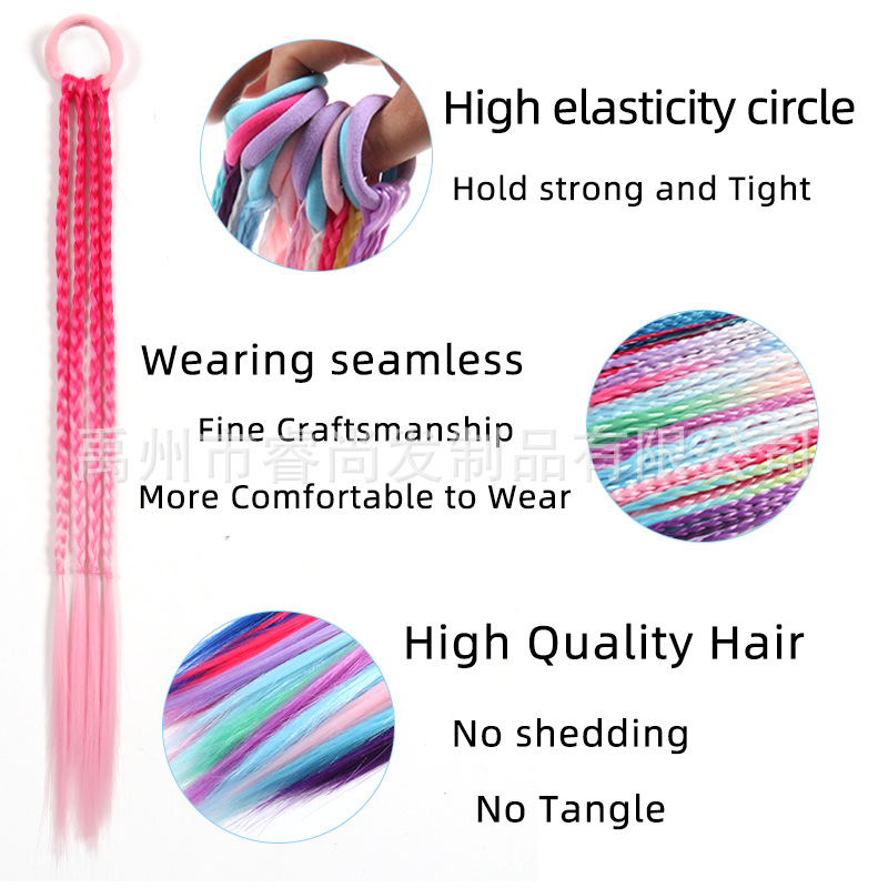 カラーかつら編みおさげかつらおさげレディース女の子プリンセスショー用髪のポニーテール