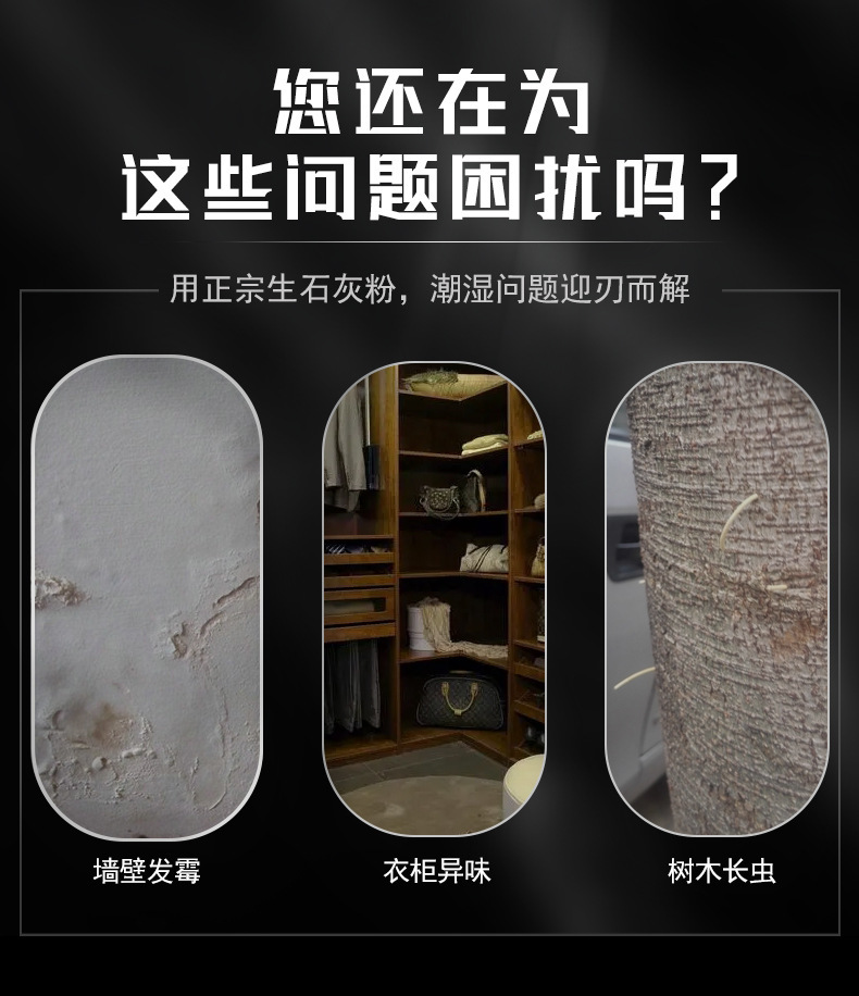 生石灰粉末乾燥、消毒、除湿、防湿、防カビ、吸水、防虫、浄水、消臭、樹木浄化