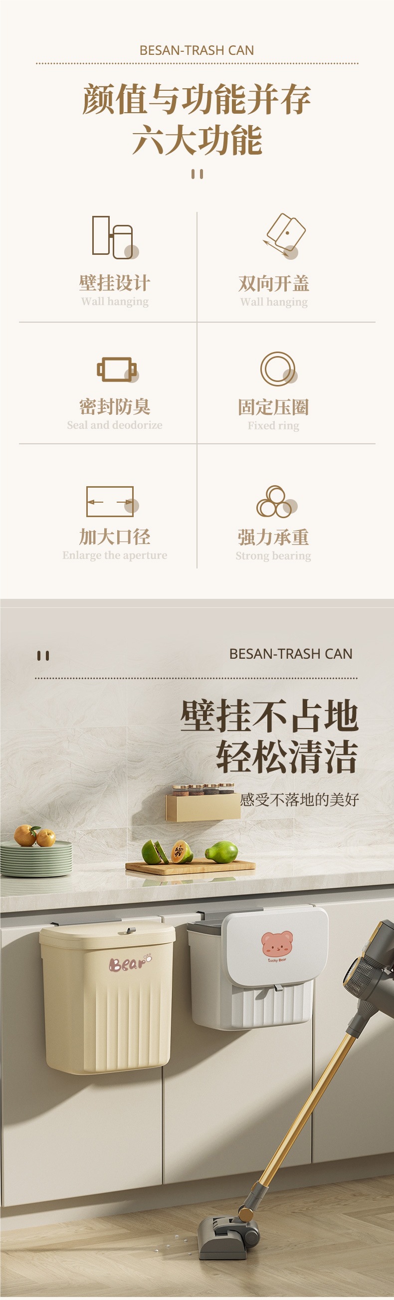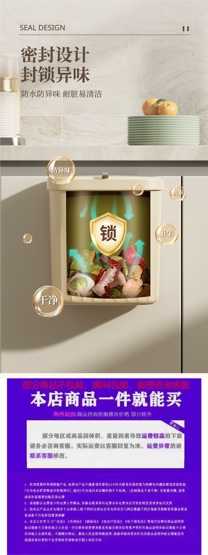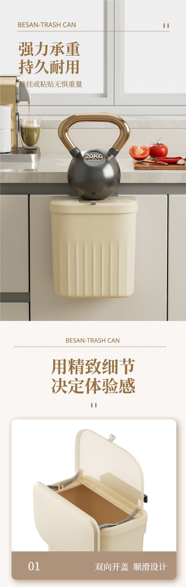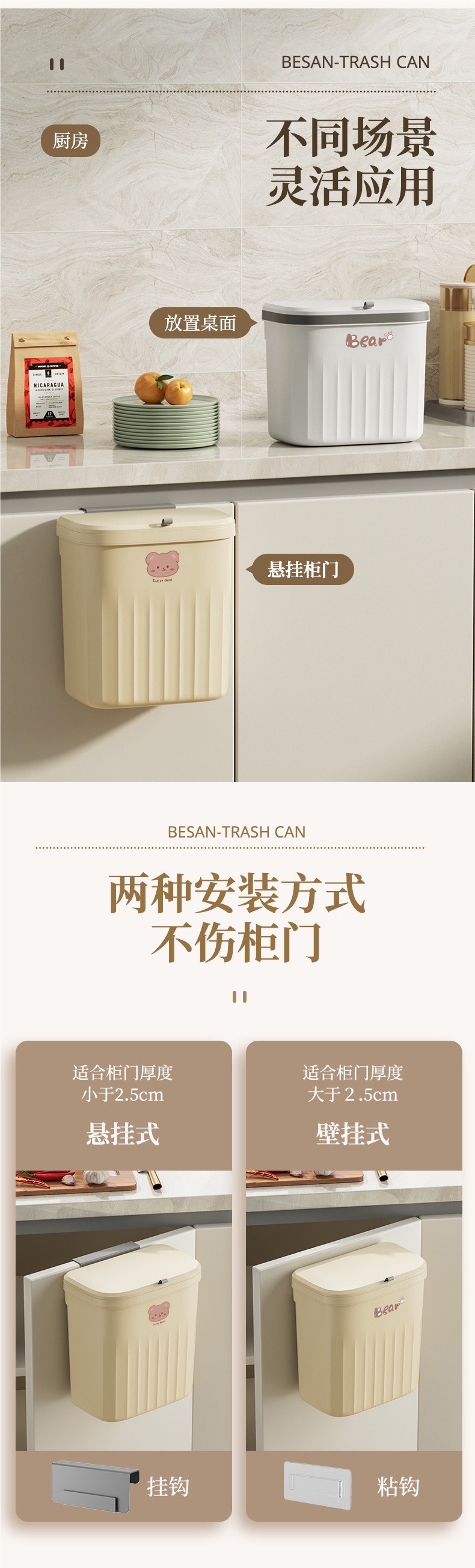 厨房垃圾桶盖带轻奢壁挂式家用卫生间厕所带盖纸篓厨余专用收纳桶