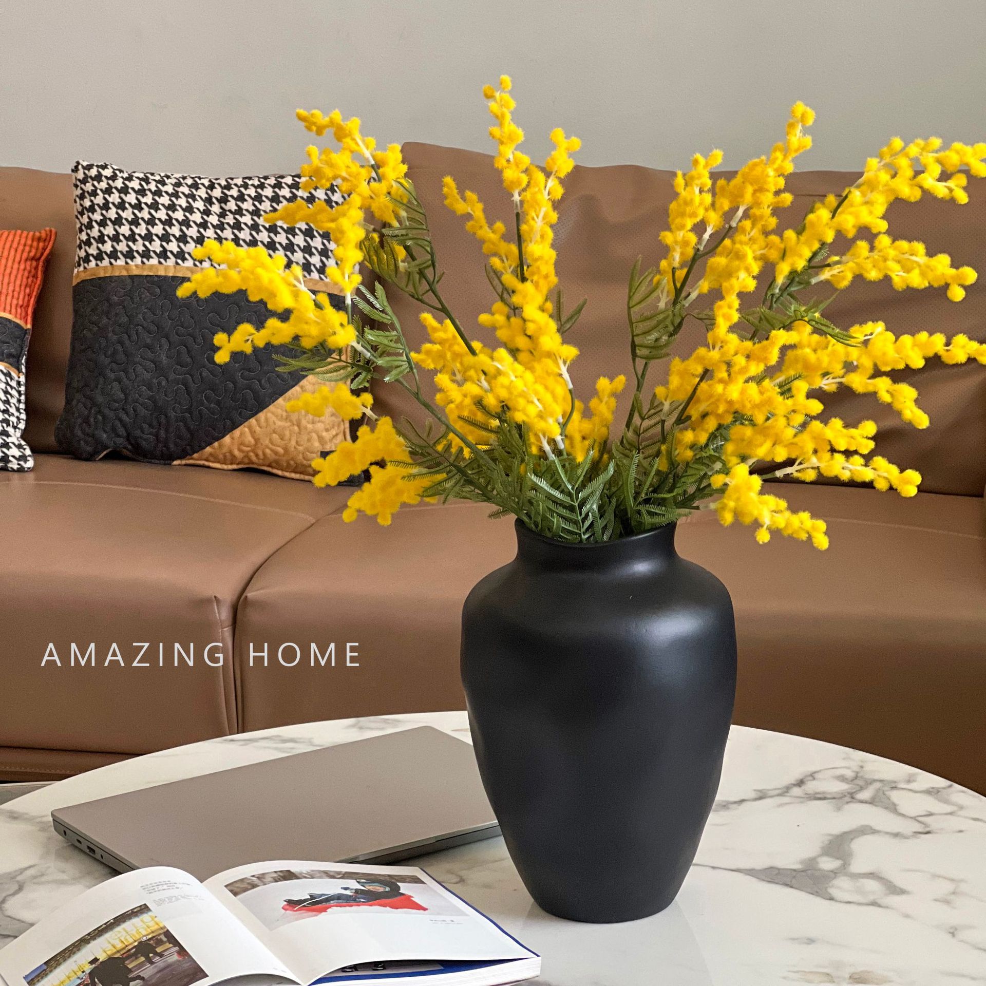 陶瓷黑色大花瓶复古侘寂风插花民宿客厅轻奢高级感家居干花器摆件