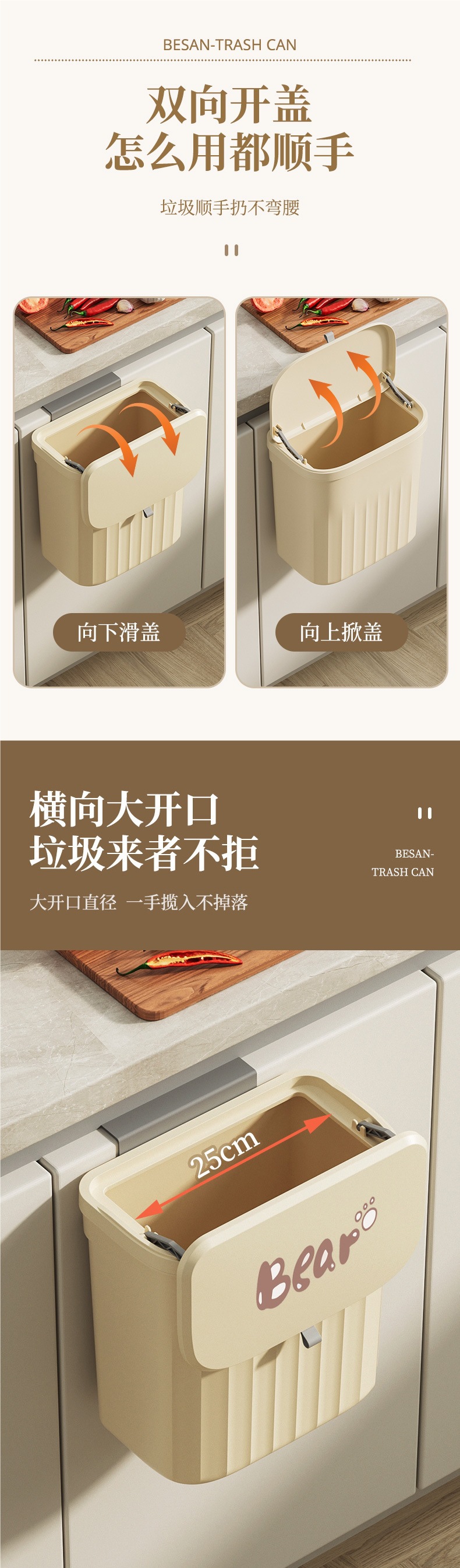 壁挂垃圾桶带盖卫生间客厅纸篓厨余挂式收纳桶夹缝垃圾桶厨房卧室