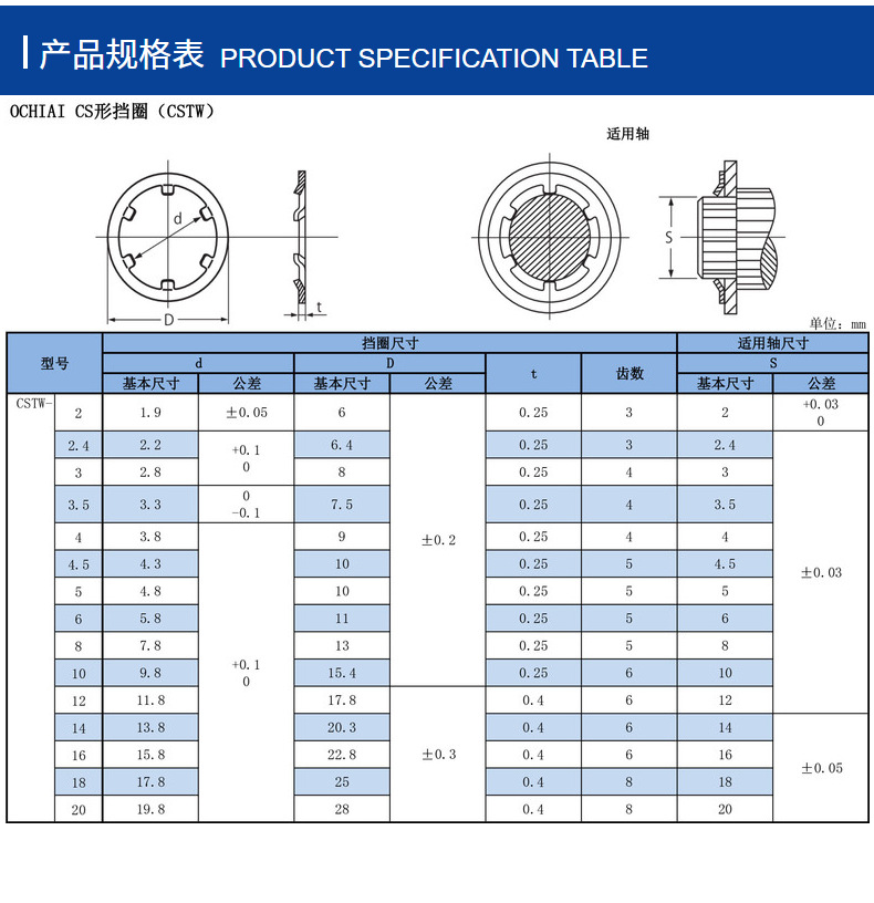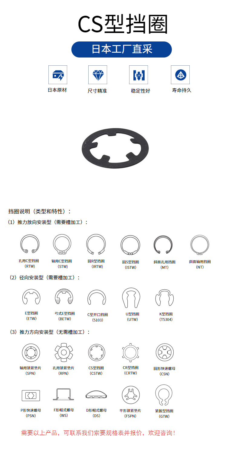 日本OCHIAI 落合スプリング CS型止め輪 丸型スラストシャフトバックル オリジナル輸入 CSTW弾性バックル