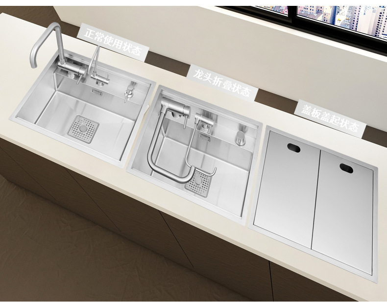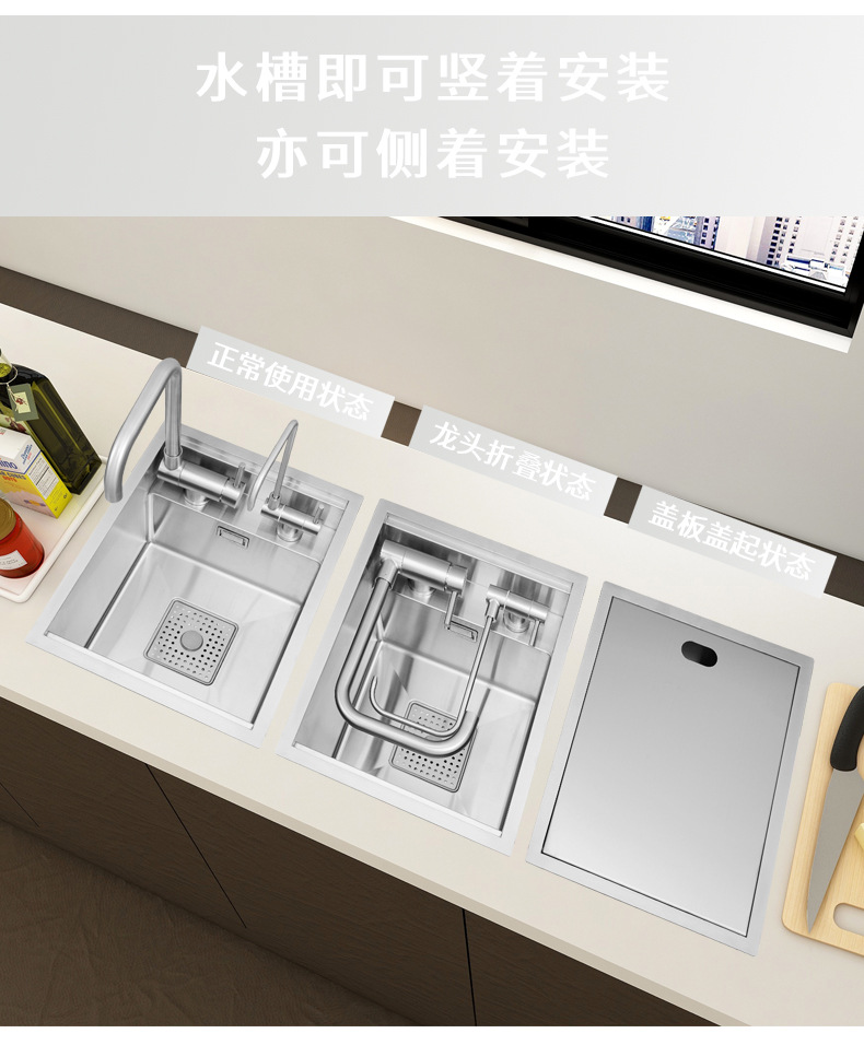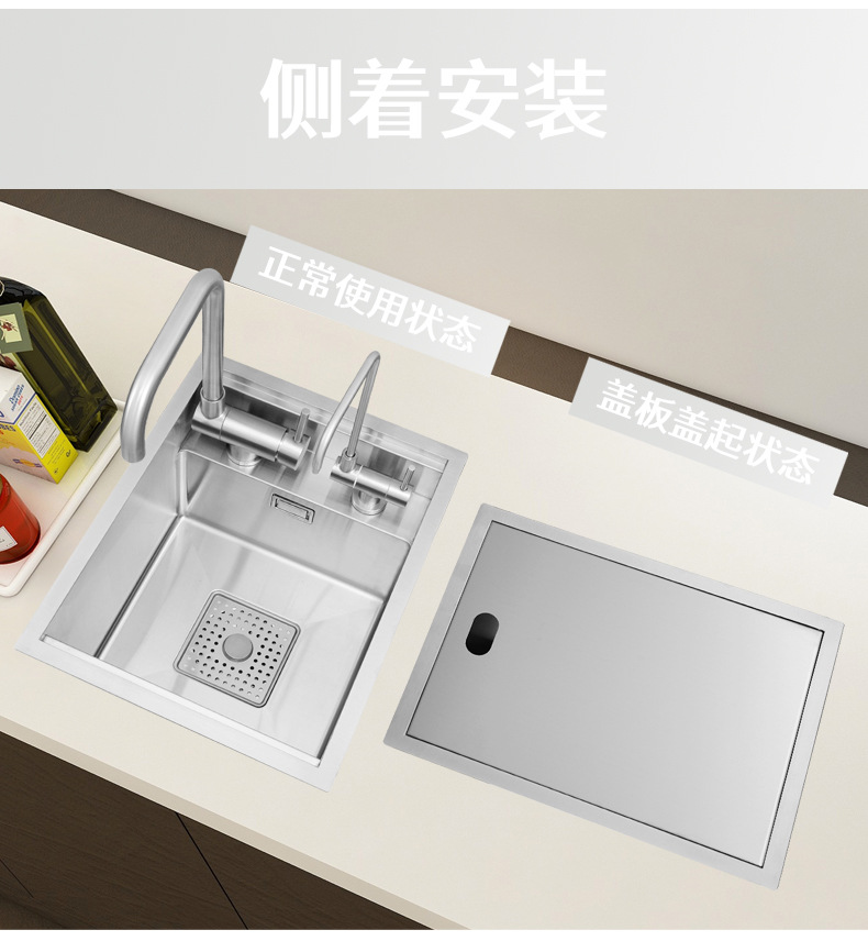 中島バーミニ単槽304ステンレス隠し式水槽蓋付き洗面器洗面器キッチン