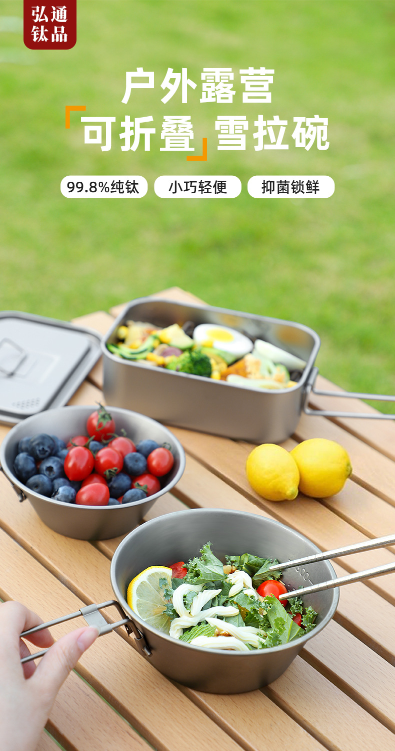 纯钛饭盒方形户外露营密封便当盒不漏汤钛餐盒折叠便携单兵钛饭盒
