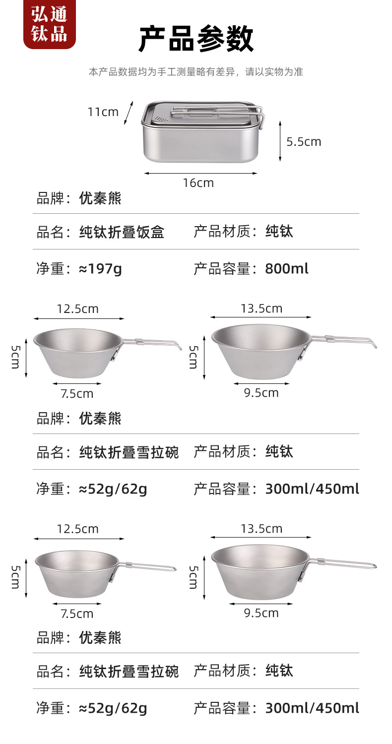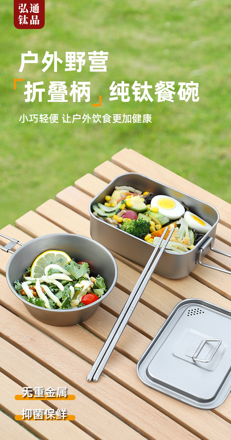 lunch-box户外露营便携可明火纯钛饭盒野营便当盒钛餐具纯钛饭盒